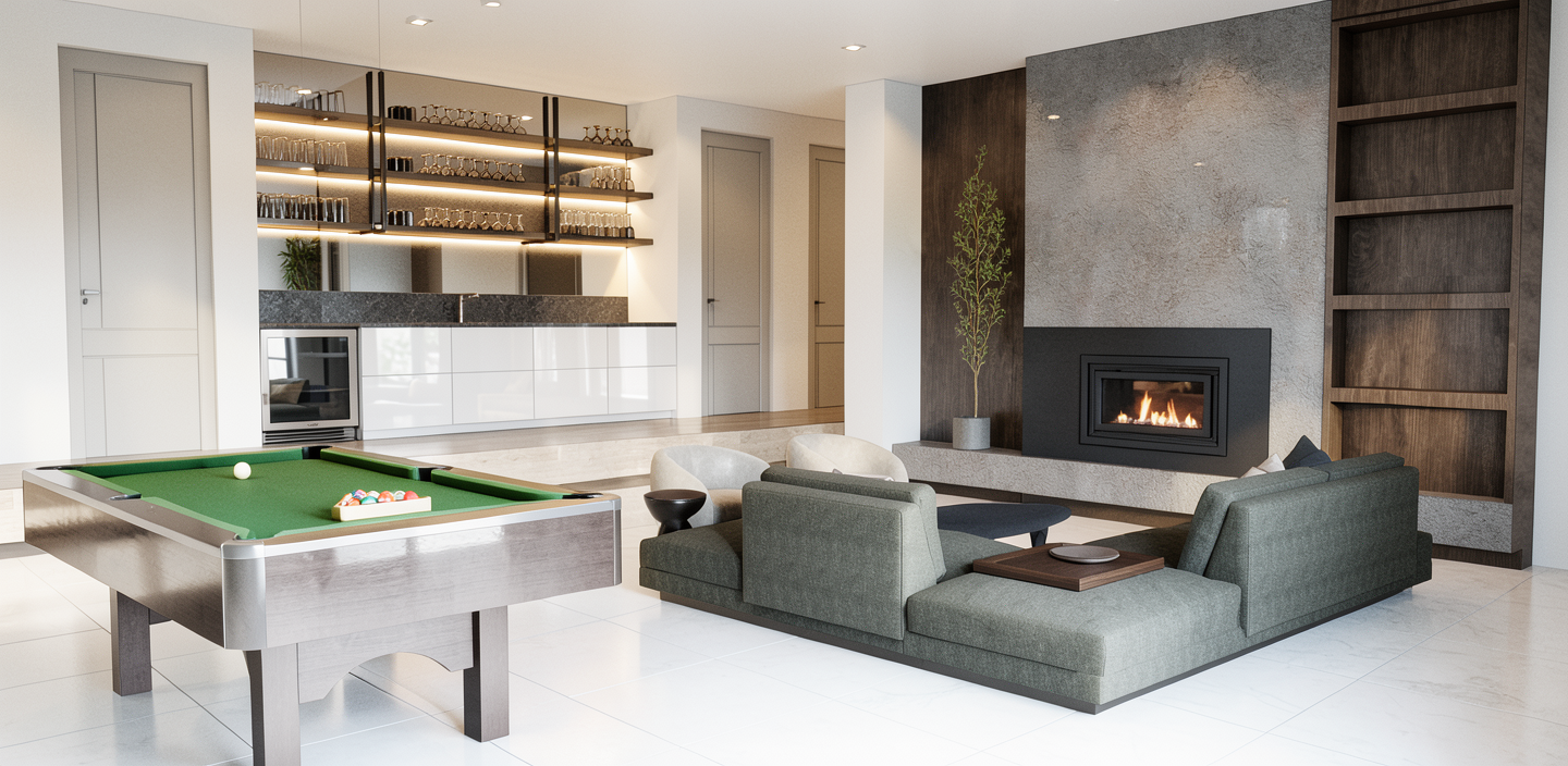 add photorealism while keeping your colors and materials unchanged add warm lighting creating a restaurant atmosphere warm ambient lighting keep interior light and bright