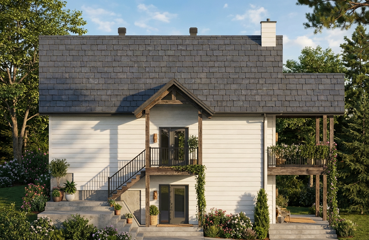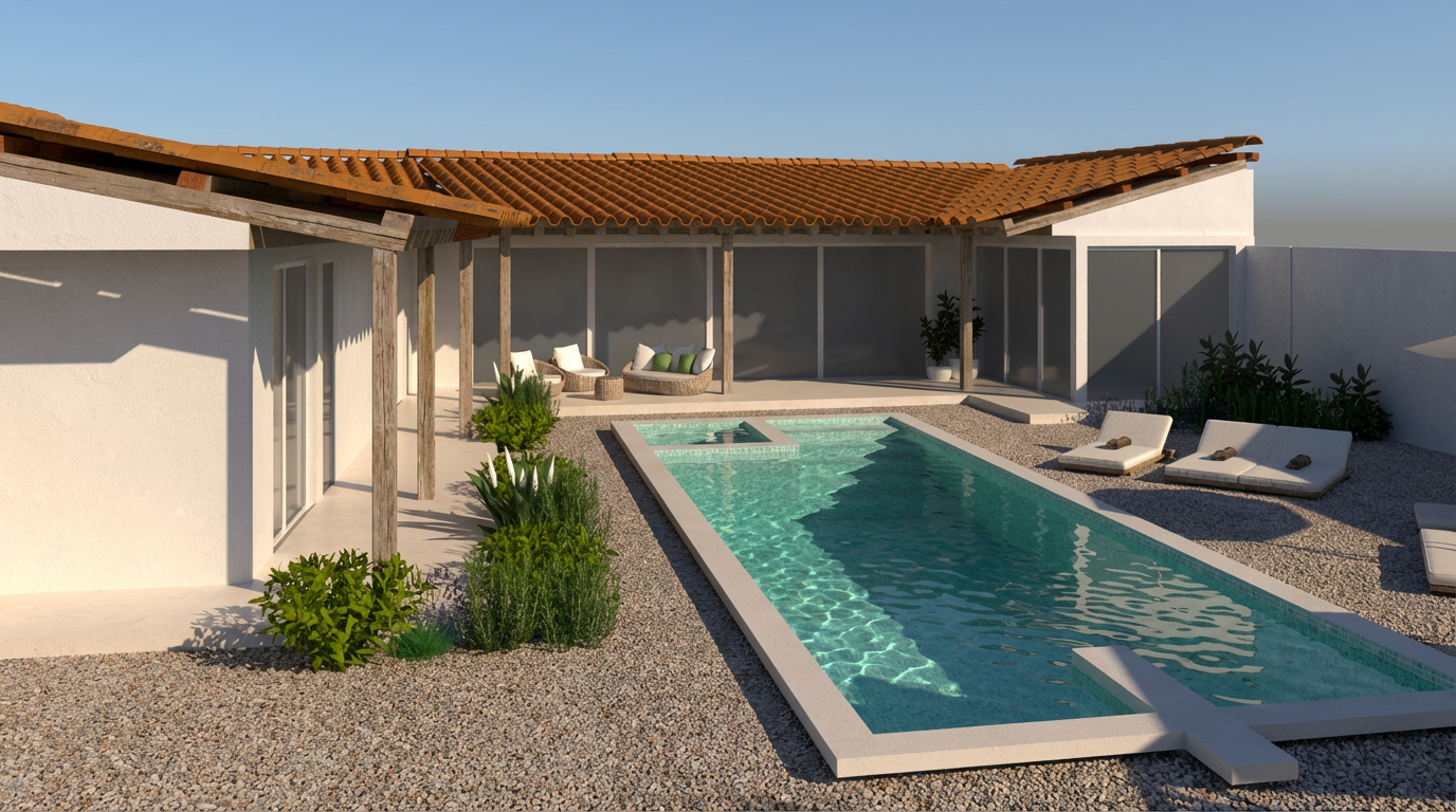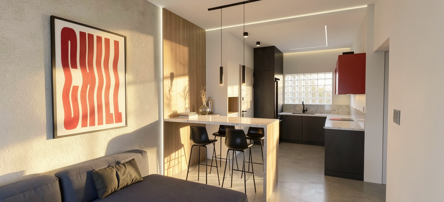 transform the provided exterior image into a high end photorealistic render place the building in new orleans la on a lively vibey street use modern cars show a night scene add the same palm trees to the side of the building and cobblestone streets from the previous rendering