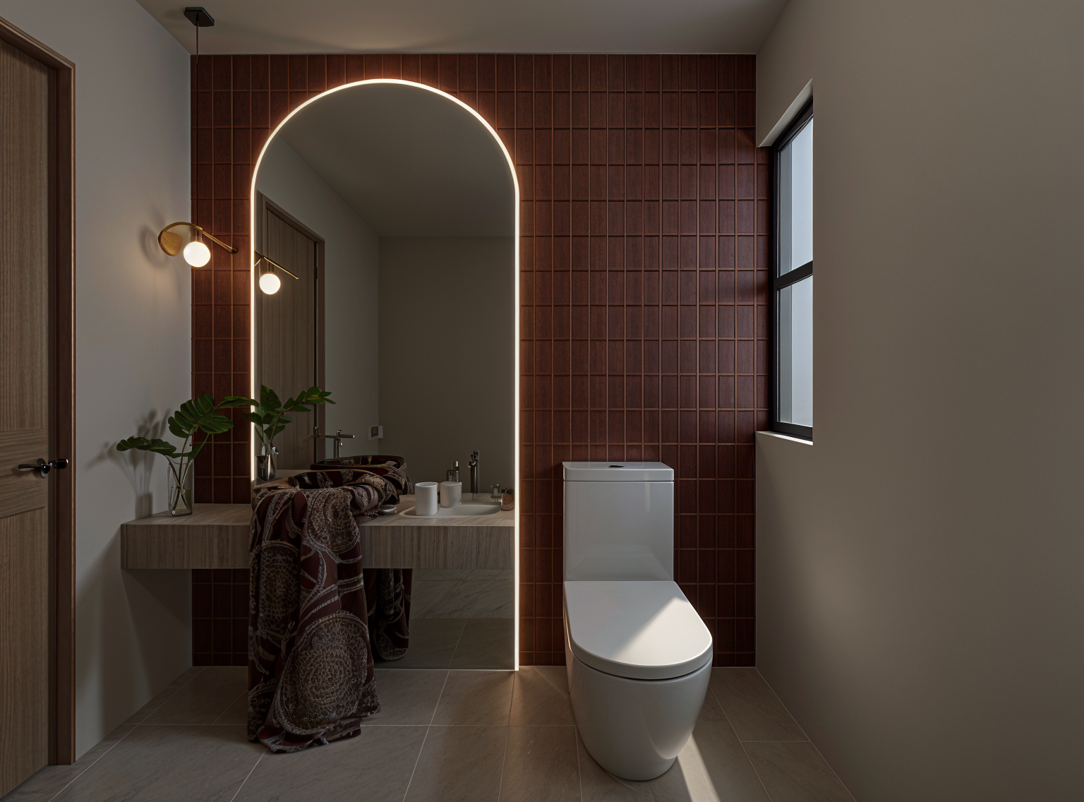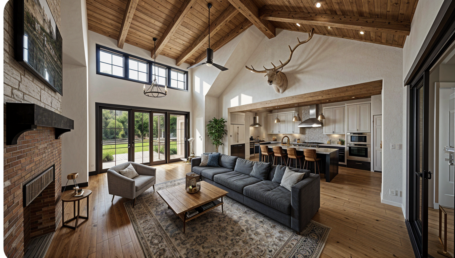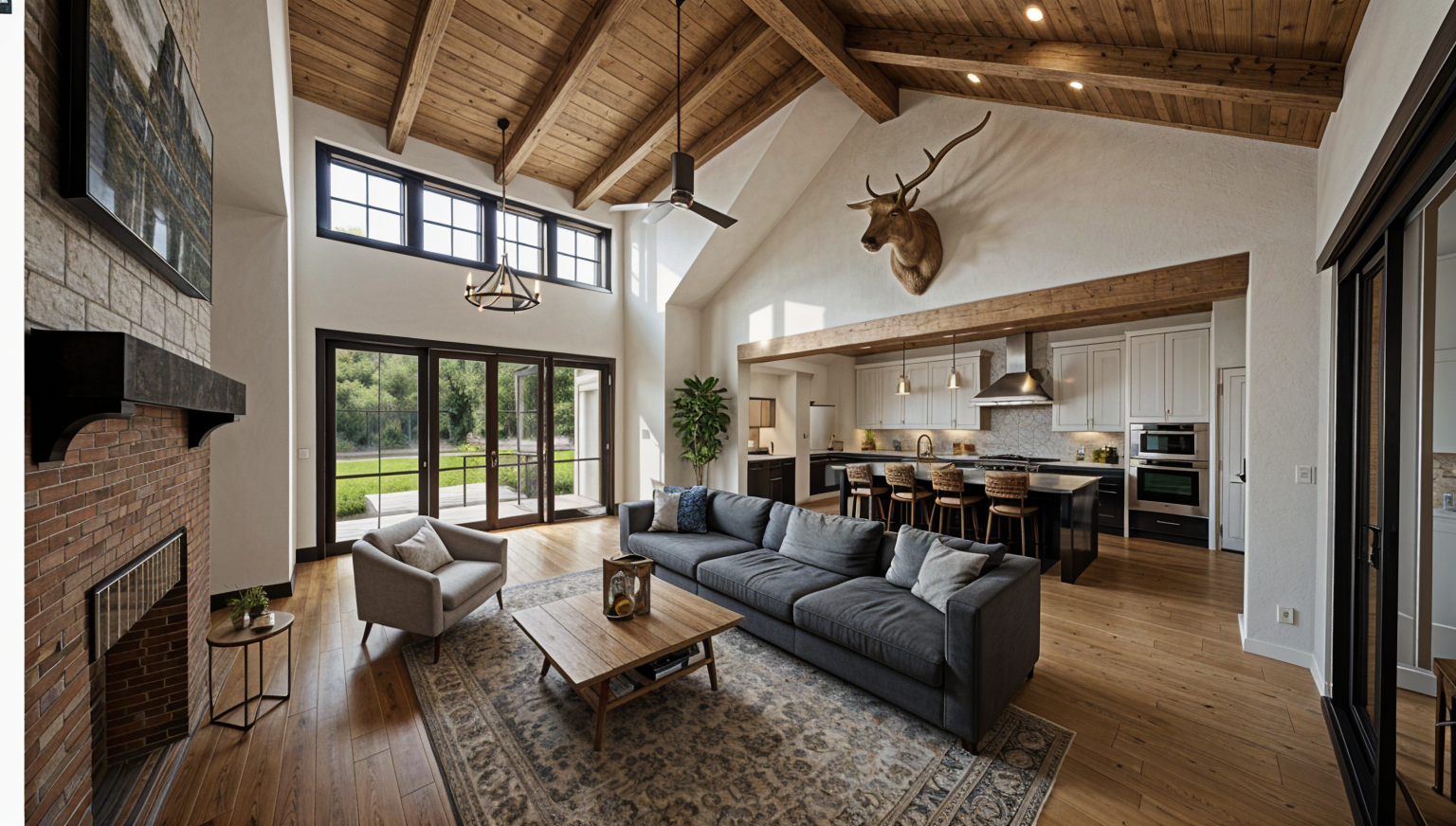 modernist but dramatic exterior shot visualize a modern california style residential building with a contemporary design the building should have white stucco exterior walls storefront large windows at the entrance with black metal trim and sleek black accents along the edges the atmosphere should be dramatic low saturation sunlight casting soft shadows the surrounding landscape should include lush green shrubs and tall deciduous trees with autumn colored leaves architecture