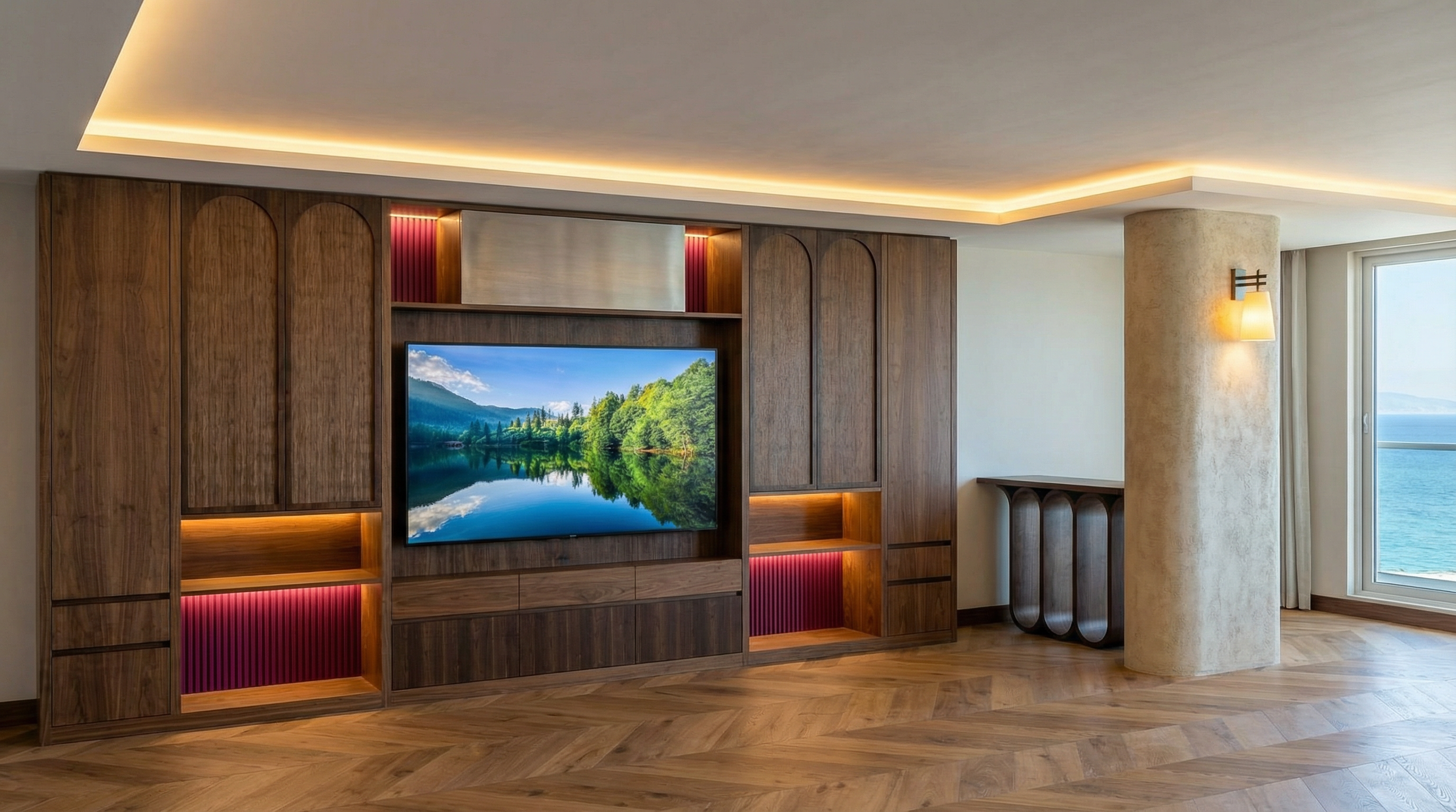 can you add living room and kitchen furniture downstairs and beige curtains upstairs