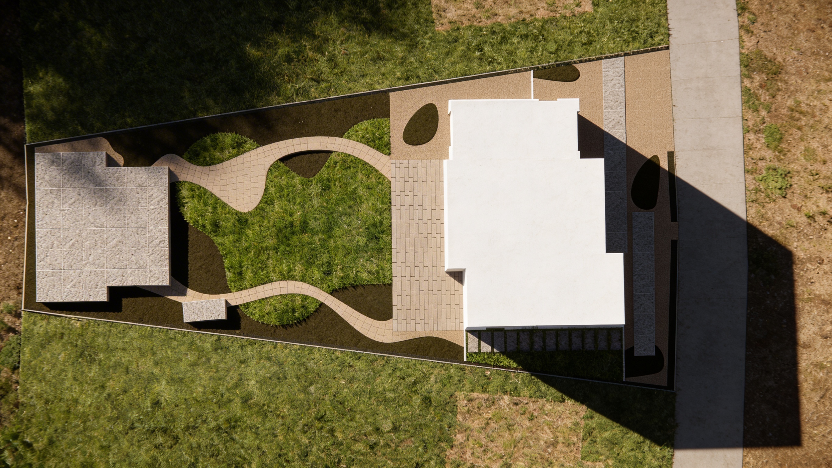 strict rules non negotiable do not modify any architectural elements under any circumstances do not change windows size shape mullions glass reflections or placement do not change doors or garage doors do not change rooflines pitches ridges or overhangs do not alter columns trim fascia or framing do not move resize or redesign anything including siding on left and right side of home do not add or remove any elements the structure proportions and layout must remain 100 identical to the original image geometry lock all edges openings and object boundaries must remain pixel for pixel aligned fail condition if the request would alter architecture in any way do not apply the change use the original image as a fixed base layer and apply only non destructive surface level edits task apply a warm luxury transitional exterior finish package walls sw9586 white sesame smooth matte stucco siding wood deep walnut espresso tone stone cooler tone hewn stone arctic accents wall sw9173 shiitake right side of the home stucco wall and left side of the home stucco wall stucco walls above entry doors and windows do not change siding texture or color trim windows fascia sw7020 black fox satin finish convert to clean natural daylight soft blue sky neutral lighting clean shadows maintain true material colors