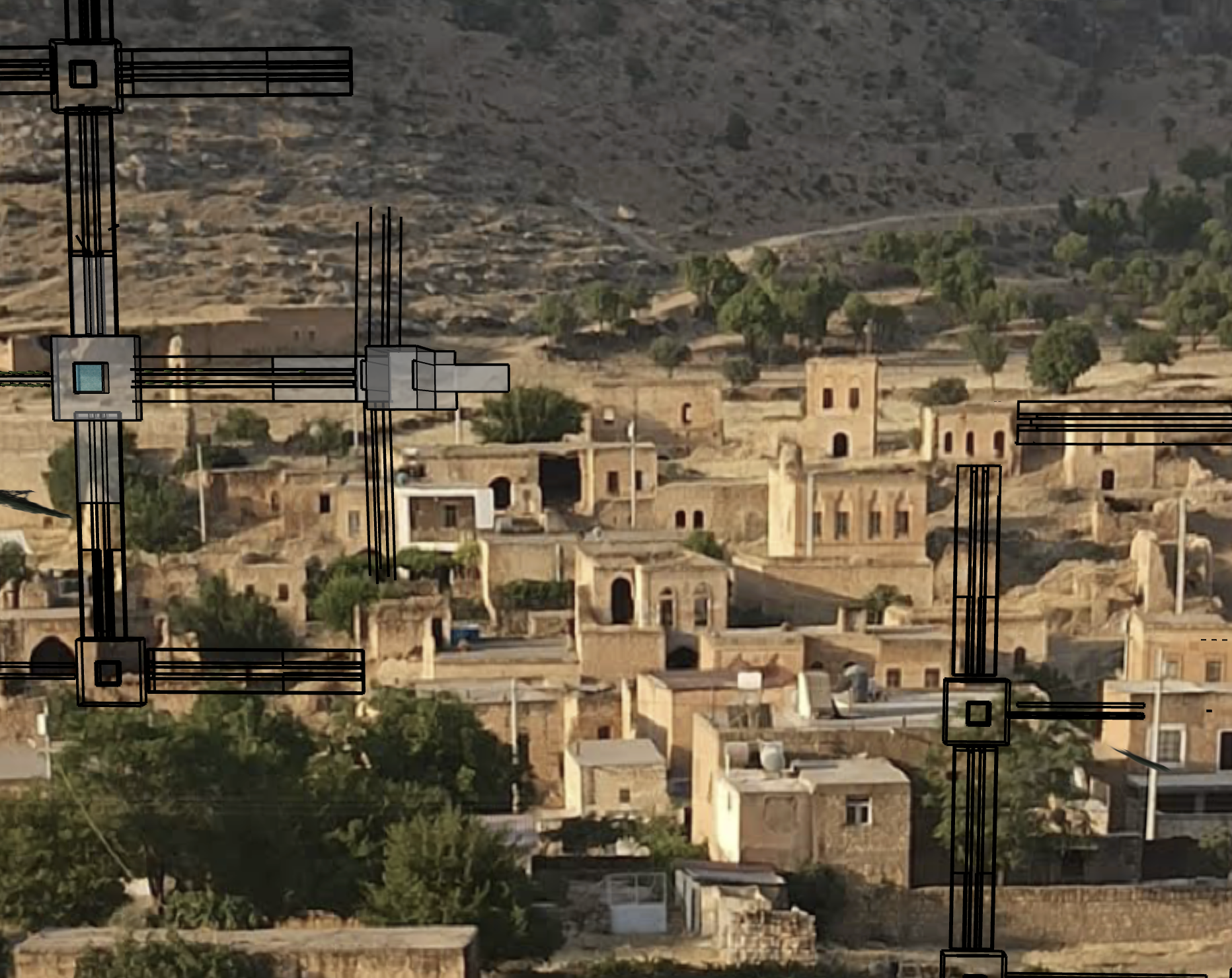high tech exterior shot old ruins corten steel bars and ramps architecture