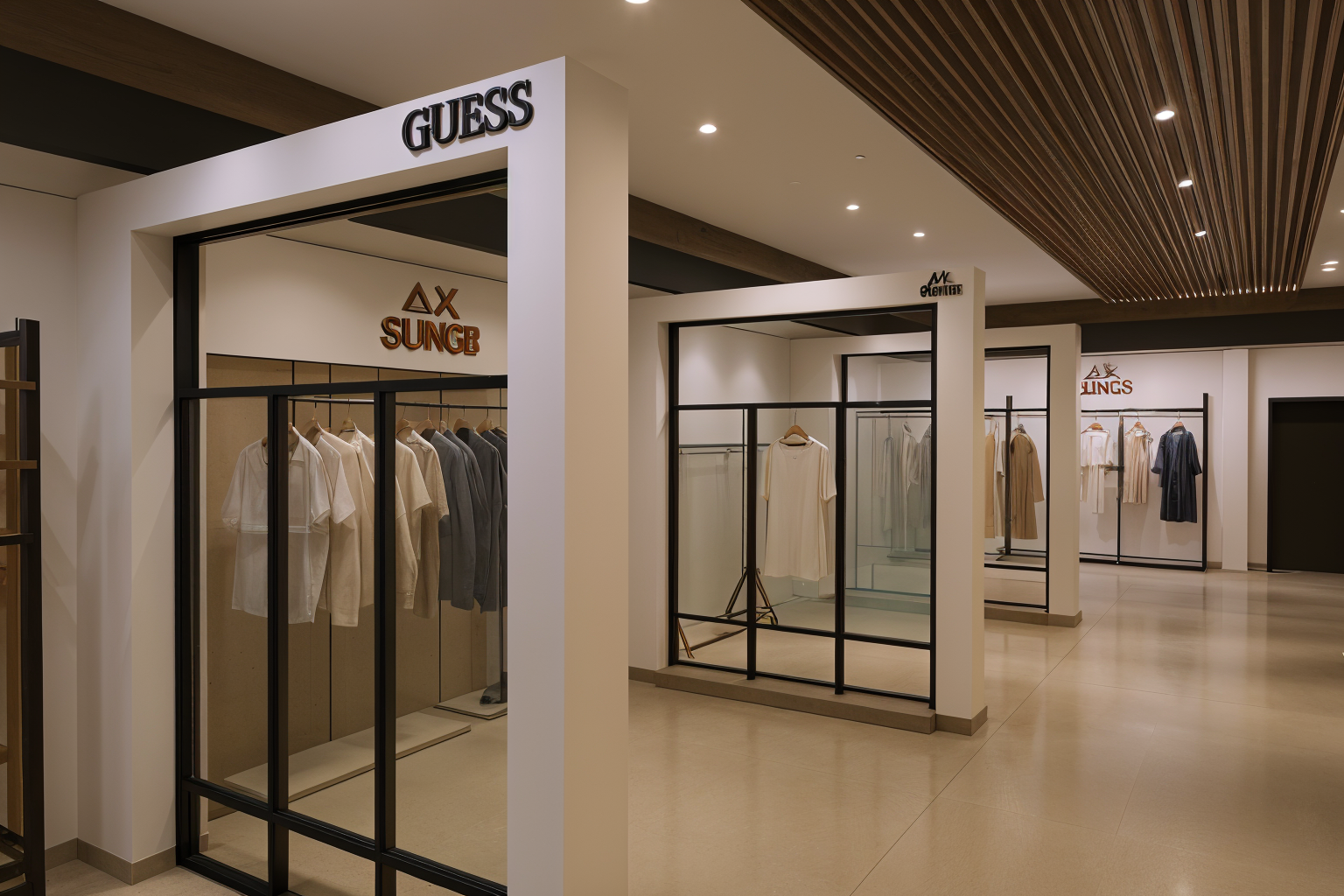 a modern clothing store interior diffused artificial lighting creating a bright and inviting atmosphere
