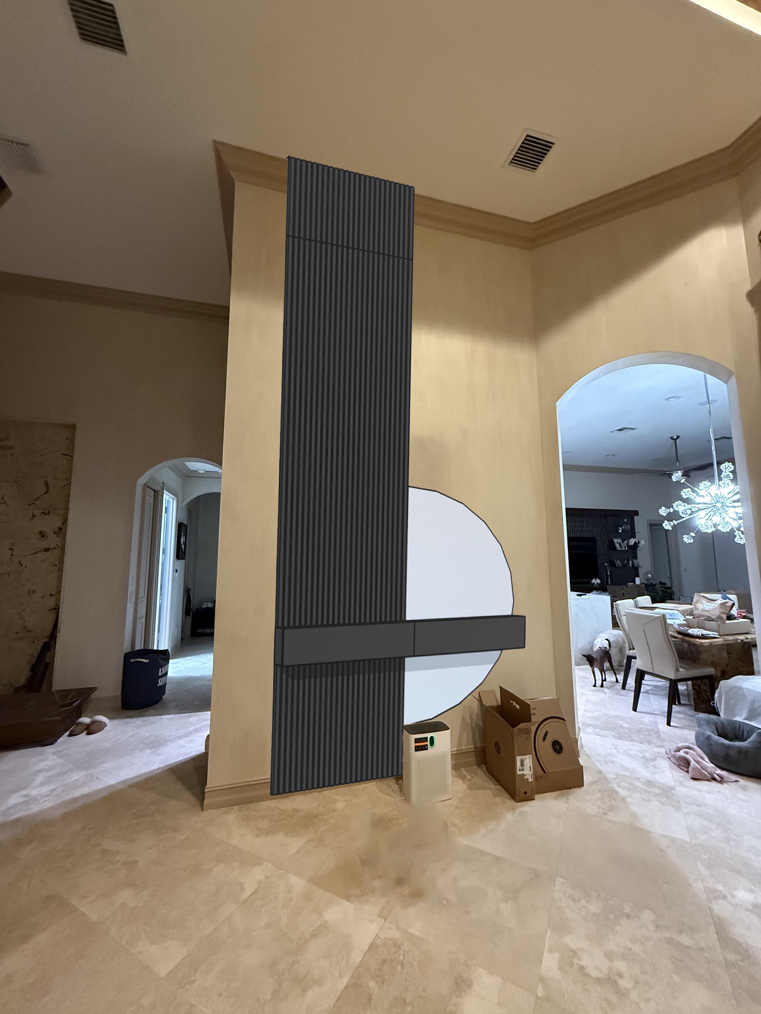 black fluted panels floating half moon frameless mirror with led warm backlight fit correctly on wall remove crown molding
