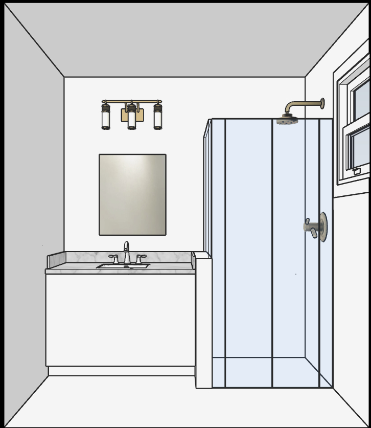 make a photorealistic interior bathroom vanity view from this screenshot add drawers to vanity no black lines in corners