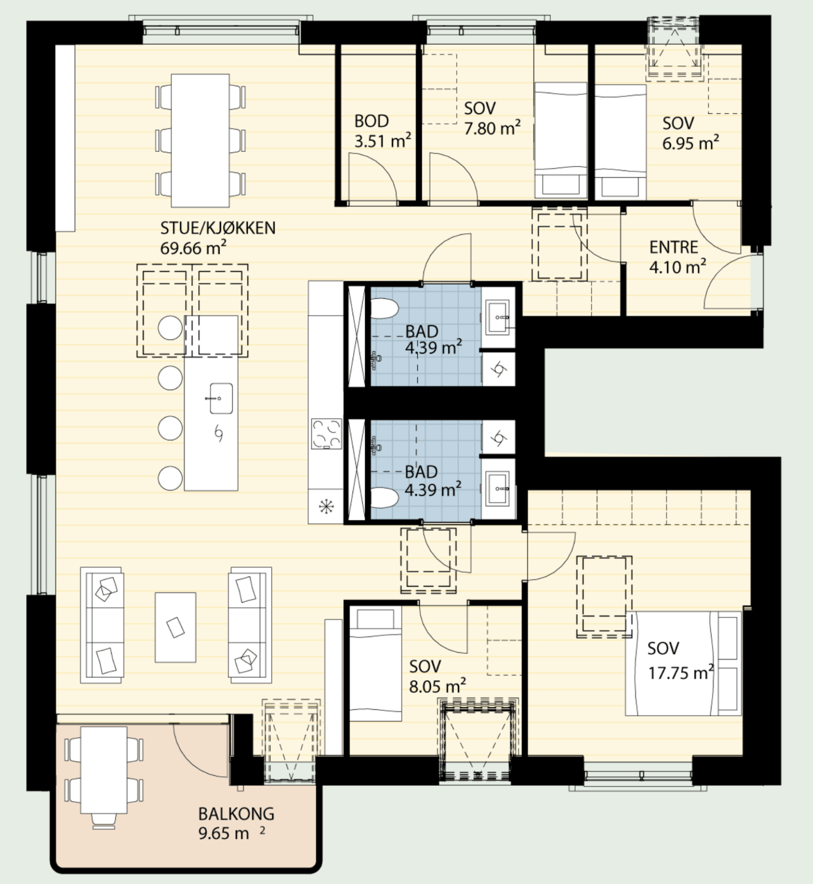 nordic interior from the top create a 2 5d axonometric isometric visualization based strictly on the uploaded 2d floor plan keep the original geometry exactly as shown wall thicknesses room sizes door positions window openings and circulation must not be altered no re planning or optimization style the interior in a modern nordic scandinavian design light oak or ash wood floors white or warm off white walls minimalist furniture with clean lines natural materials wood wool linen leather neutral color palette beige sand light grey muted earth tones furniture layout open plan living room and kitchen with a modern kitchen island and bar stools dining table in light wood with simple scandinavian chairs living area with low profile sofa coffee table and minimal shelving bedrooms furnished with simple beds built in wardrobes and calm uncluttered styling bathrooms with light tiles glass shower wall hung toilet and nordic fixtures lighting soft diffuse daylight from windows subtle warm artificial lighting pendants wall lamps downlights view style slightly elevated 2 5d cut away view no ceiling walls cut at approx 1 2 1 4 m height clean architectural visualization style realistic but restrained materials not overly glossy overall mood calm bright functional contemporary nordic home do not add extra rooms walls or change proportions avoid dramatic colors classical furniture industrial or rustic style dark floors glossy finishes exaggerated decor altered floor plan architecture