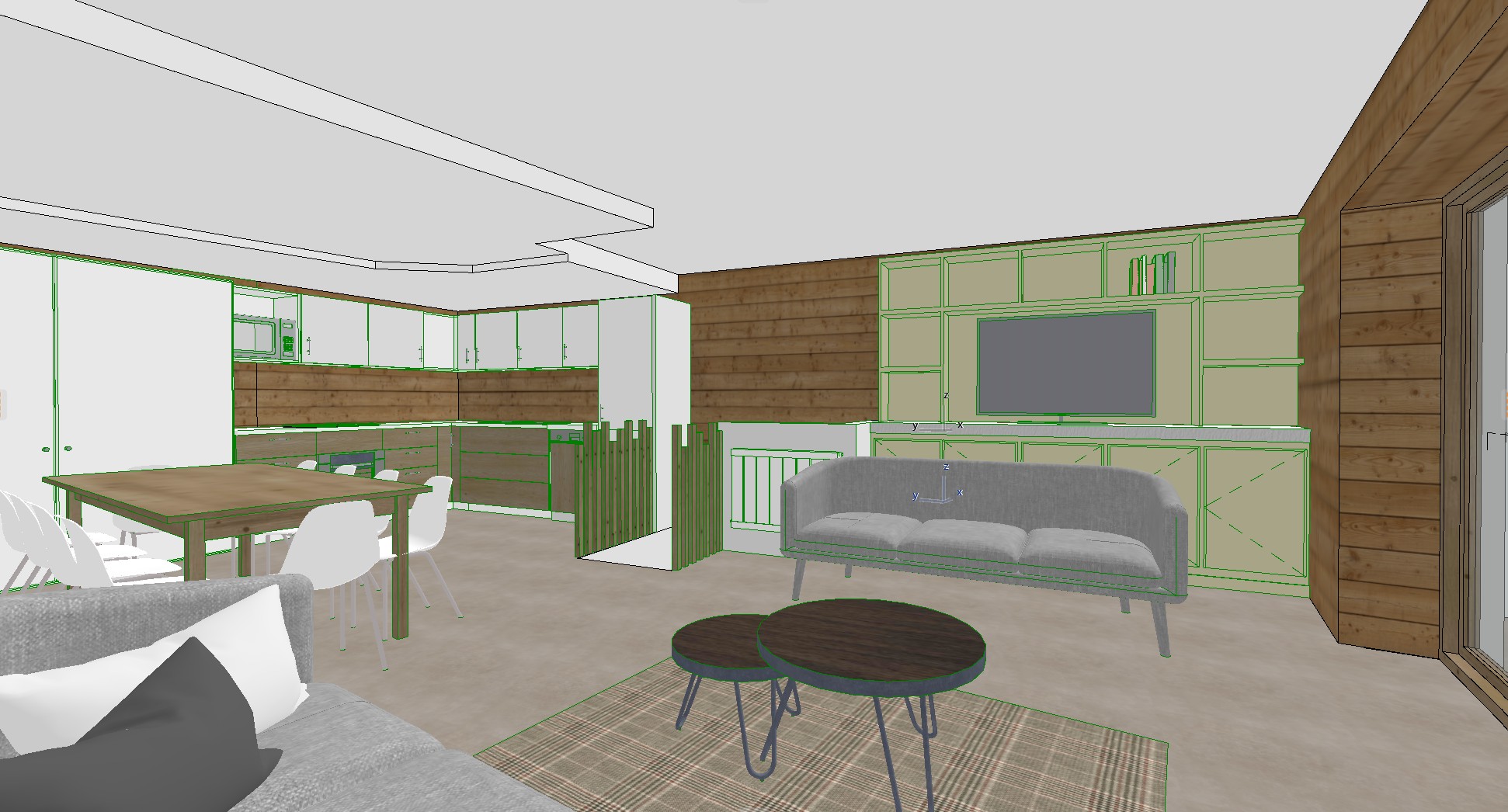 photorealistic view after this image with a contemporary chalet style
