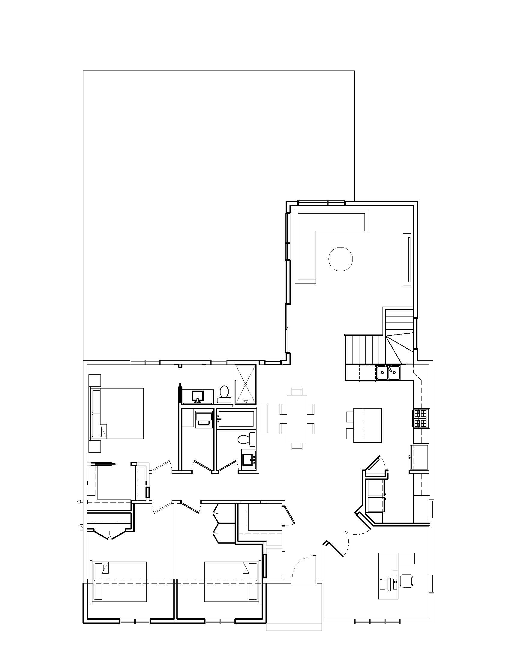 convert this floor plan into a realistic isometric 3d view of a full house show the space from an elevated angle with furniture walls and details visible use the same furniture as shows on the plan do not change the orientation of the floorplan