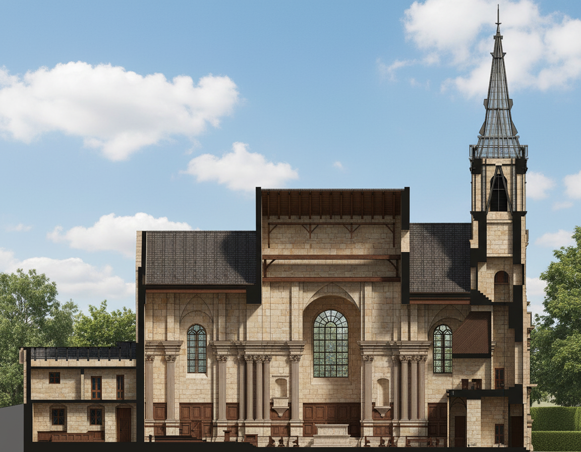 cross section with arch of a baroque church