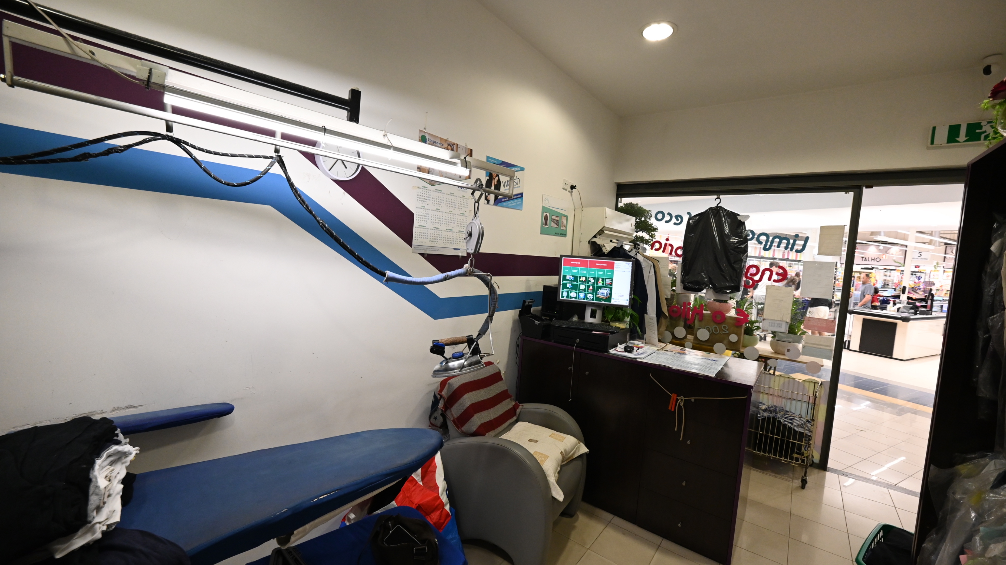 edita esta foto com ia de modo a deixares esta lavandaria mais organizada e mais limpa retira toda a desorganiza o do ch o e da secretaria desliga o computador nao alteres a cor do arm rio castanho retira os panos e almofada em cima do cadeir o cinzento melhora tambem a luz mas nao alteres nem retires nenhuma das maquinas e do mobili rio esta foto para portais imobili rios como idealista imovirtual etc