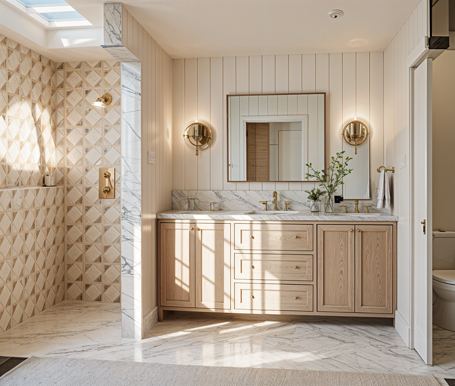 photorealistic result of the provided architectural render preserve the exact architecture layout materials furniture placement and fixtures from the original image with no redesign or modifications the purpose is only to improve realism and lighting quality the room should be well lit