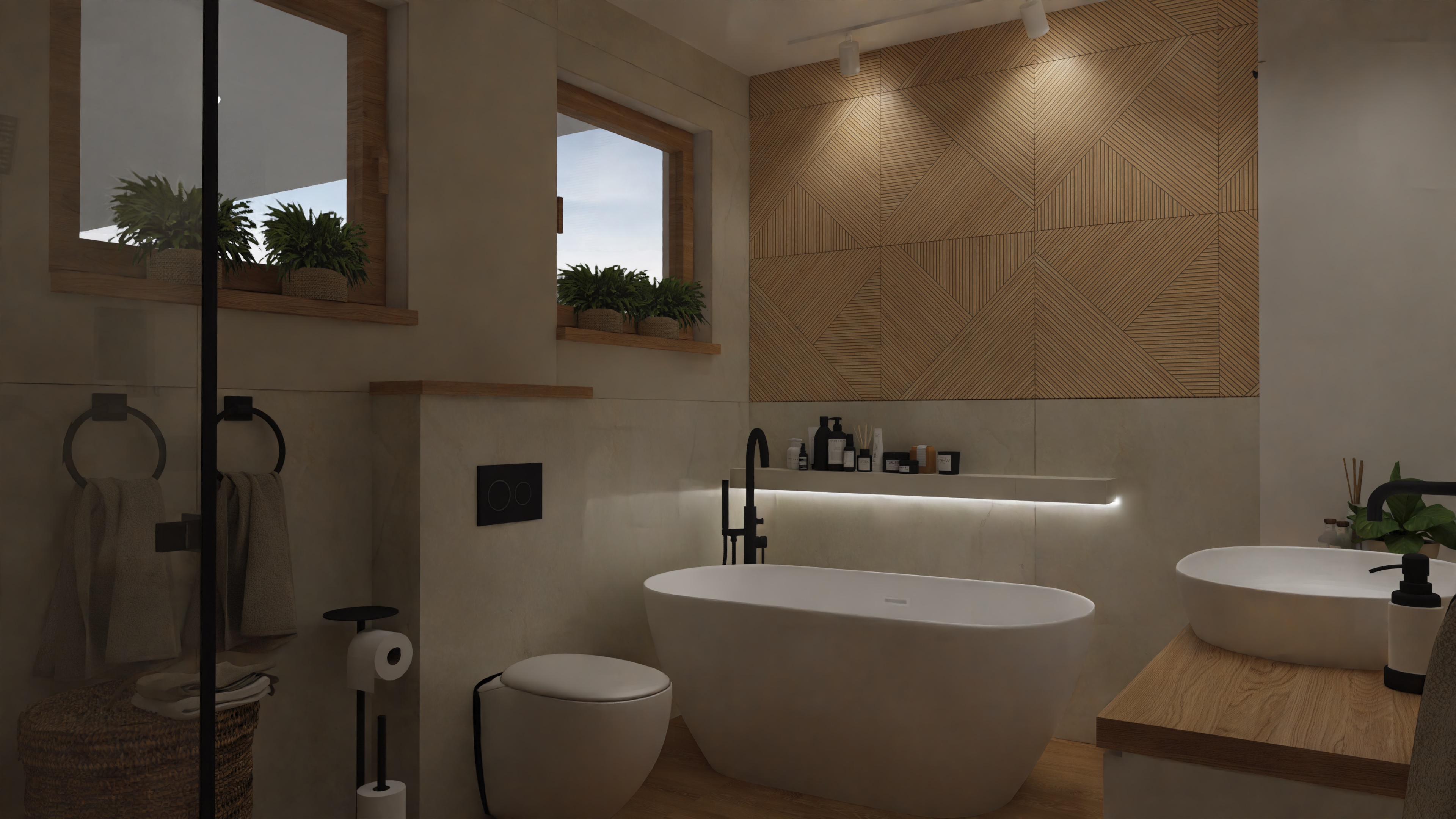 transform this picture into a realistic interior visualization with natural light keep the camera angle keep the original materials and textures make it an ultradetailed view with global illumination and photo based rendering materials add contrast and sunlight add trees behind window
