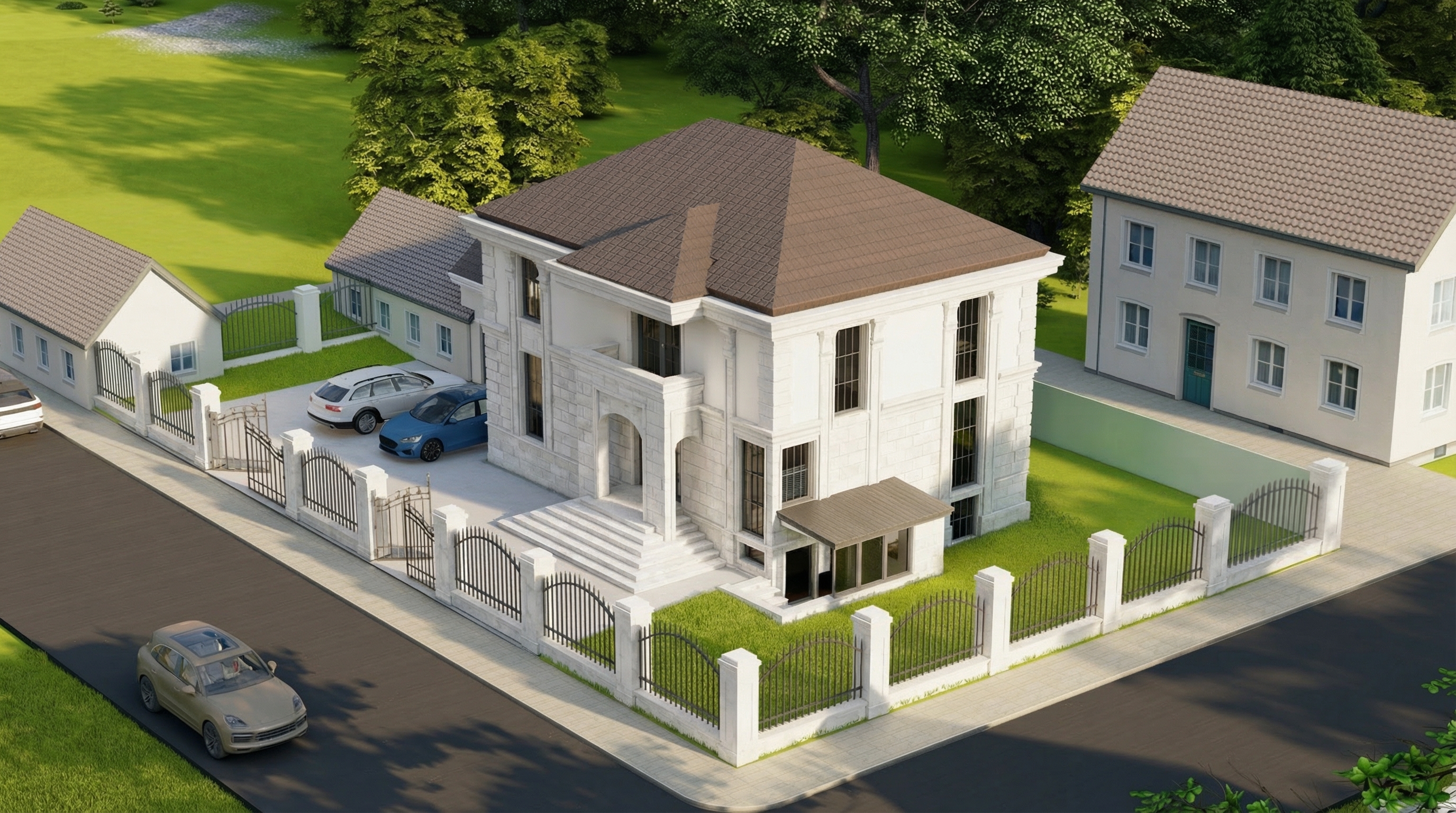 add other homes and vegetations in the neibourhood