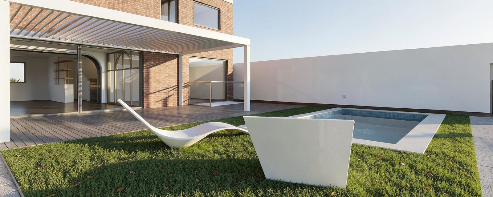realistic look you want modern luxury interior with natural lighting photorealistic outdoor scene with soft shadows with stucco and black roof
