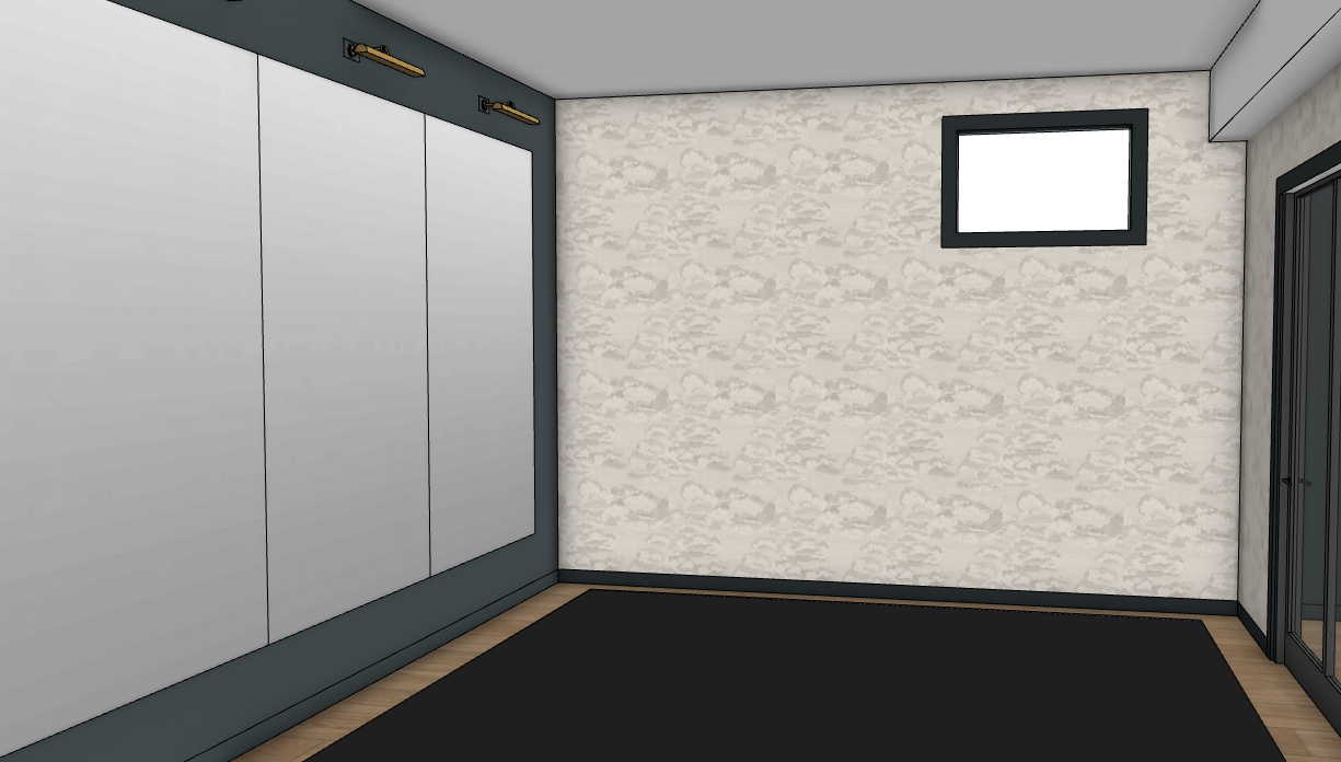 create a photorealistic render of the 3d model do not change sizing or dimensions note that the reflective surface on the left side are mirrors