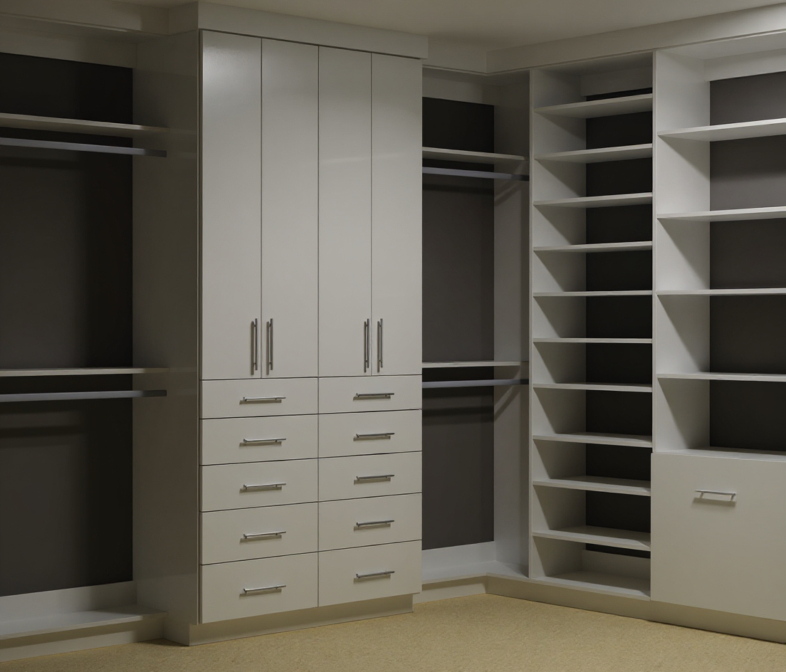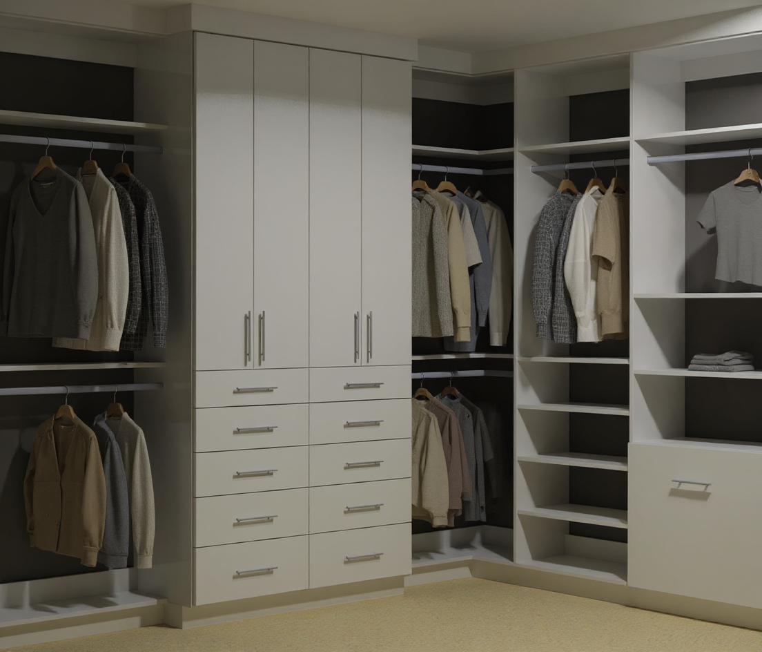 add clothes to the rods add 3 pairs of shoes to each shelf