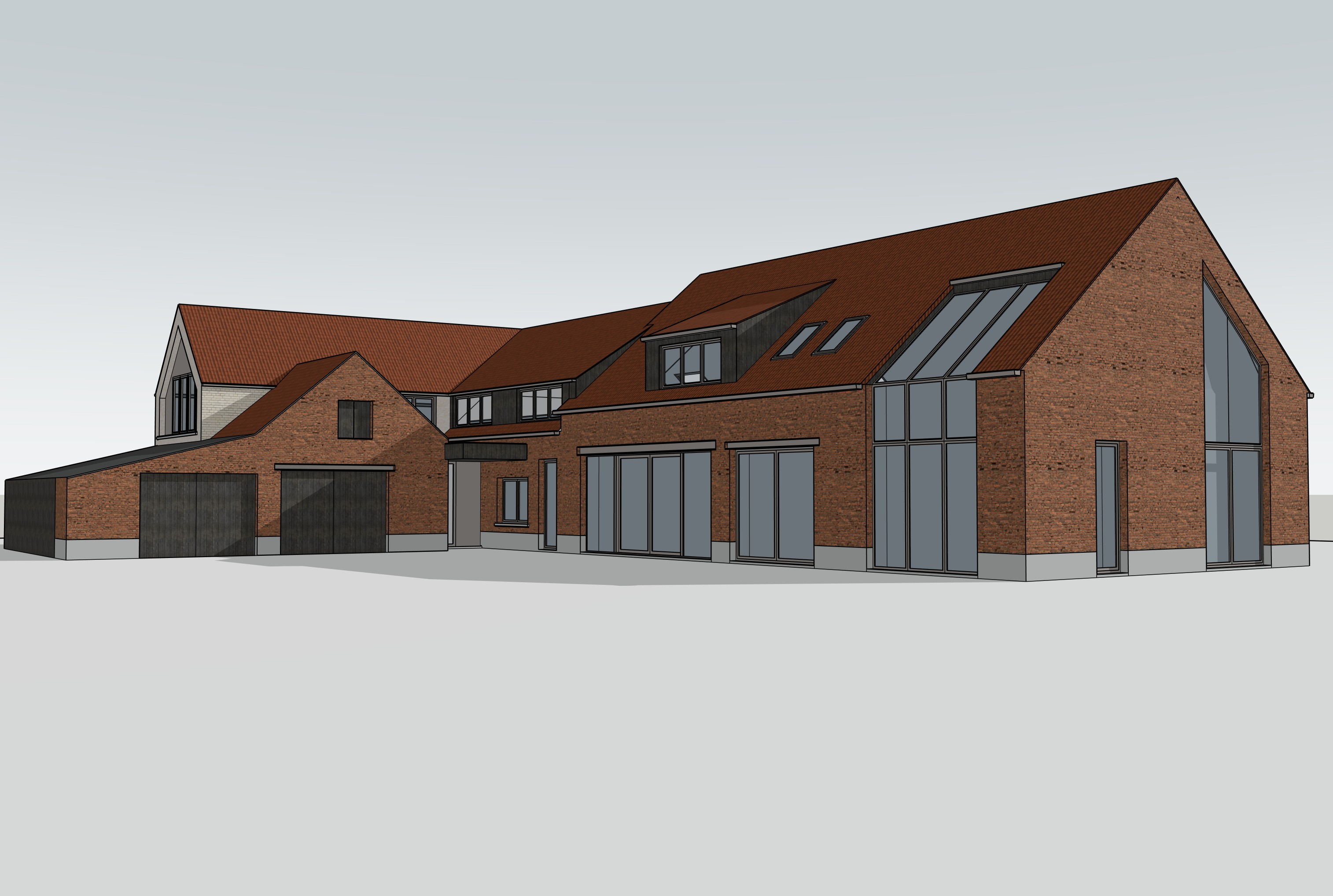 it is a sunny day add some green grass small plants and trees around the building there may be some pavement close to the building