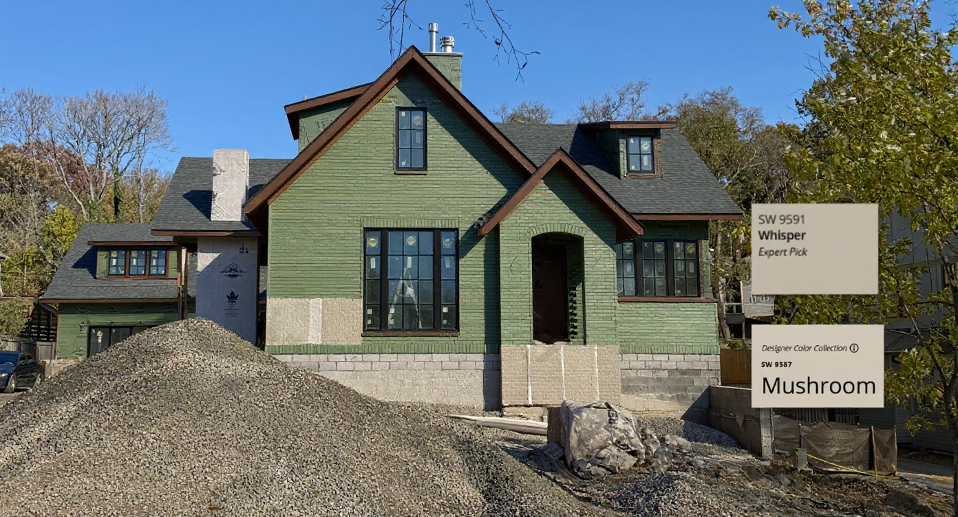 a modern minimalist kitchen design neutral earthy tones such as green with a bold brave pop of colour a real clever design lower and upper cabinets contrasting architecture