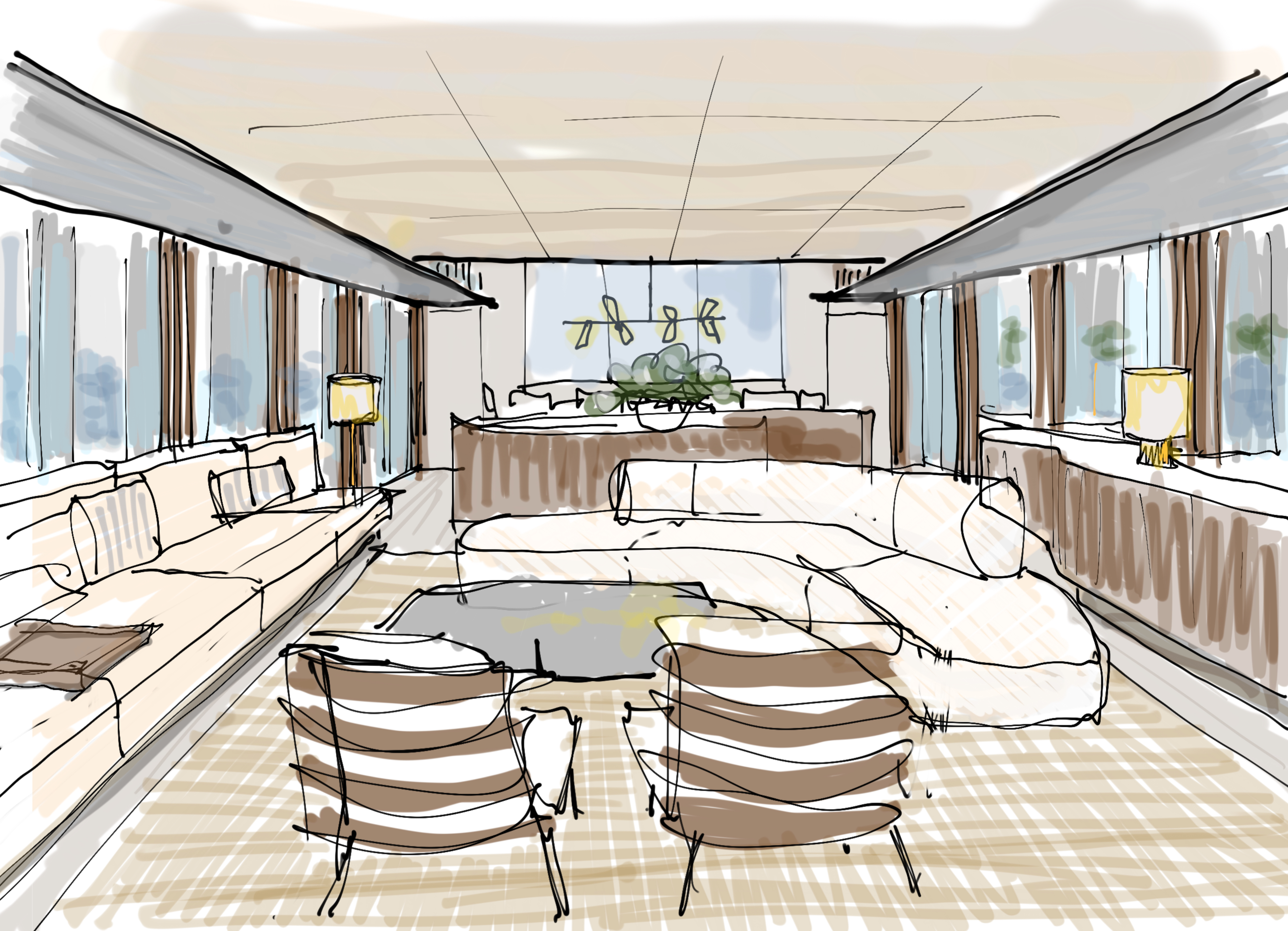interior shot yacht interior with dark polished wood bright brushed oak ceiling and natural carpet