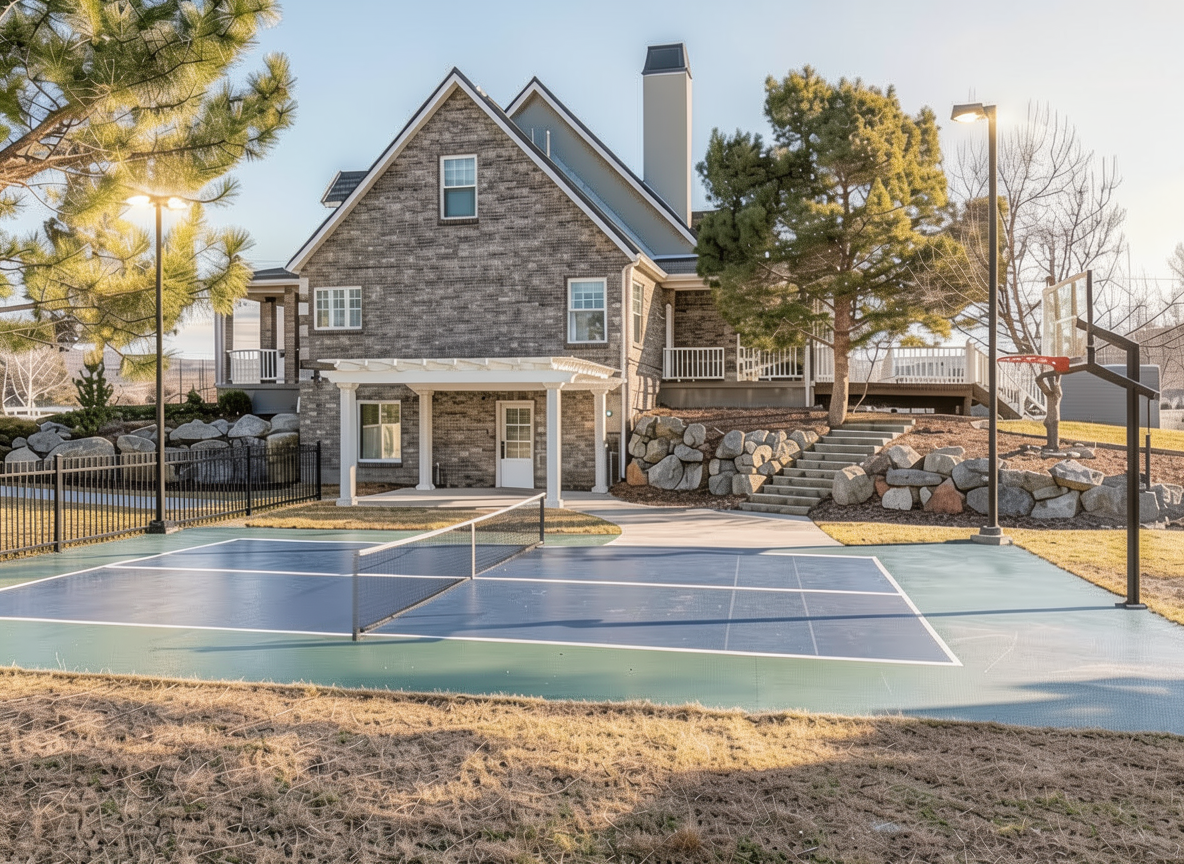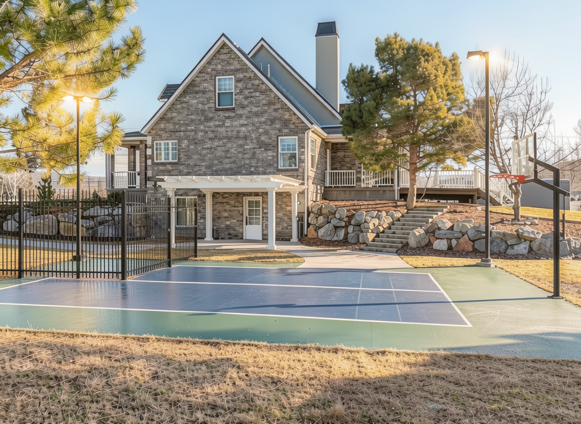 add a 4 high black fence on the left end behind the lights just as wide as the court is