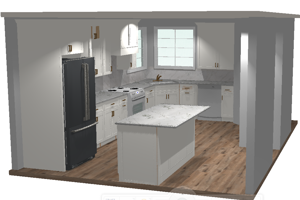 warm white upper cabinets and natural modern warm cabinets for the lowers with a stone backsplash have cabinets go all the way to the ceiling and remove the trim piece in the flooring can we see it with a lighter natural floor