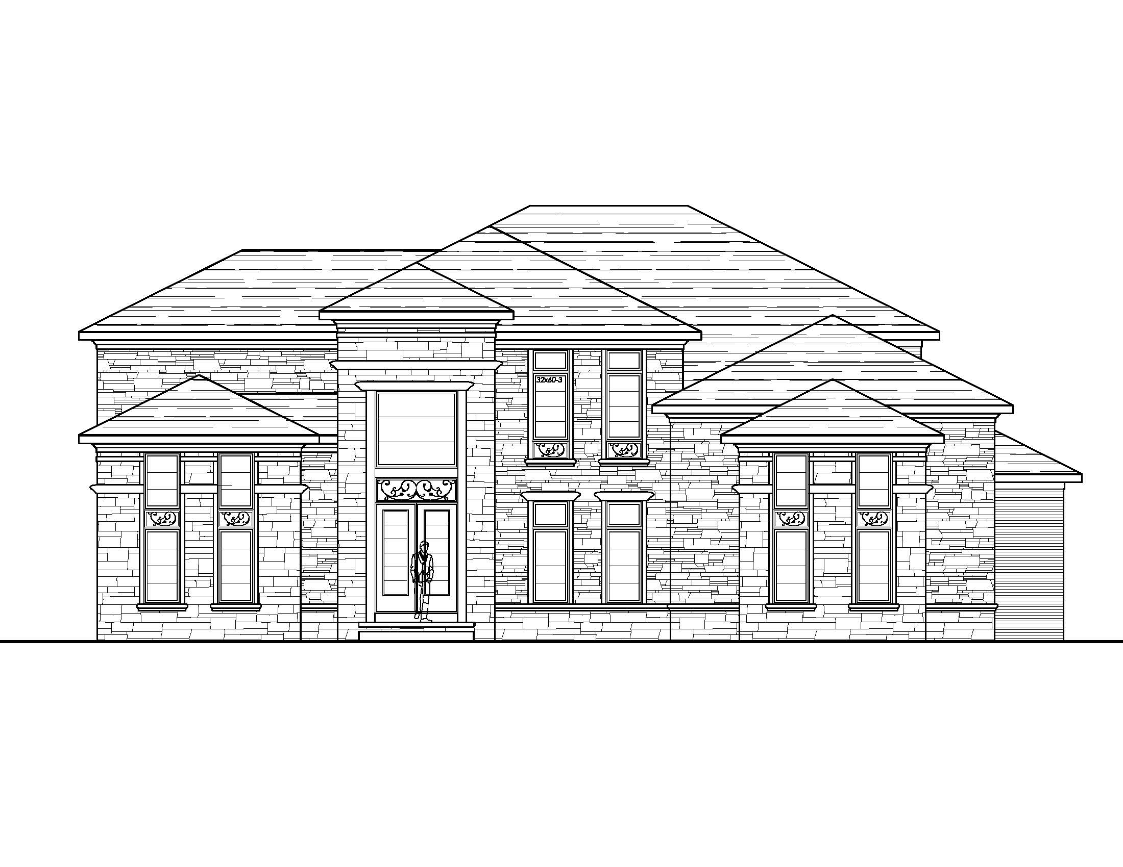 6pm evening a modern two story house with a sleek design and hip roofs featuring medium sand colored stone black framed windows the roof is a dark charcoal color adding contrast large windows dominate the facade reflecting the blue sky with a few white clouds surrounding the house a lush green lawn with colorful flower beds in shades of pink lavender and yellow lansdcape stones dot the yard the atmosphere is serene and welcoming with evening sunlight casting gentle shadows and light reflecting through the windows do not modify the massing as shown add contemporary porch lights