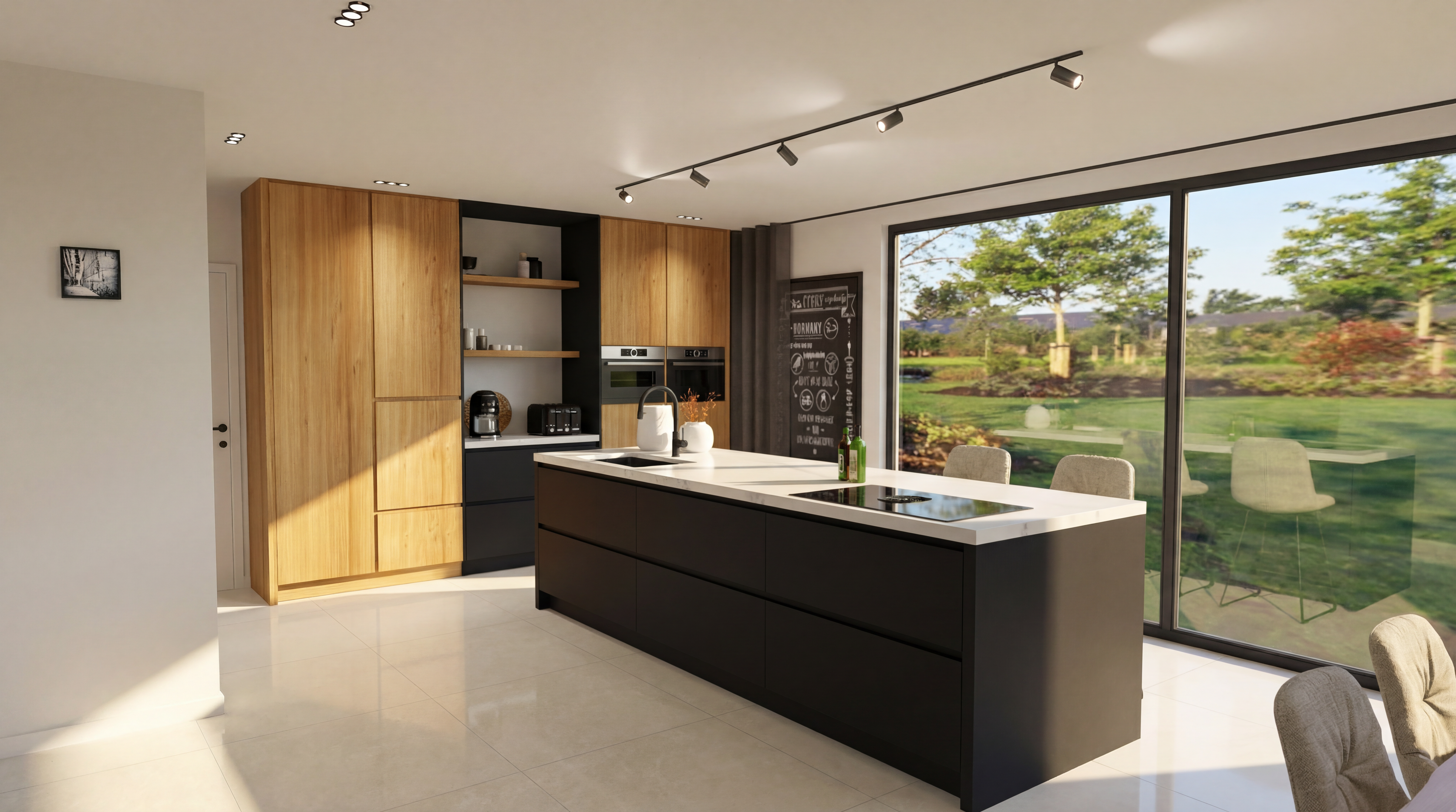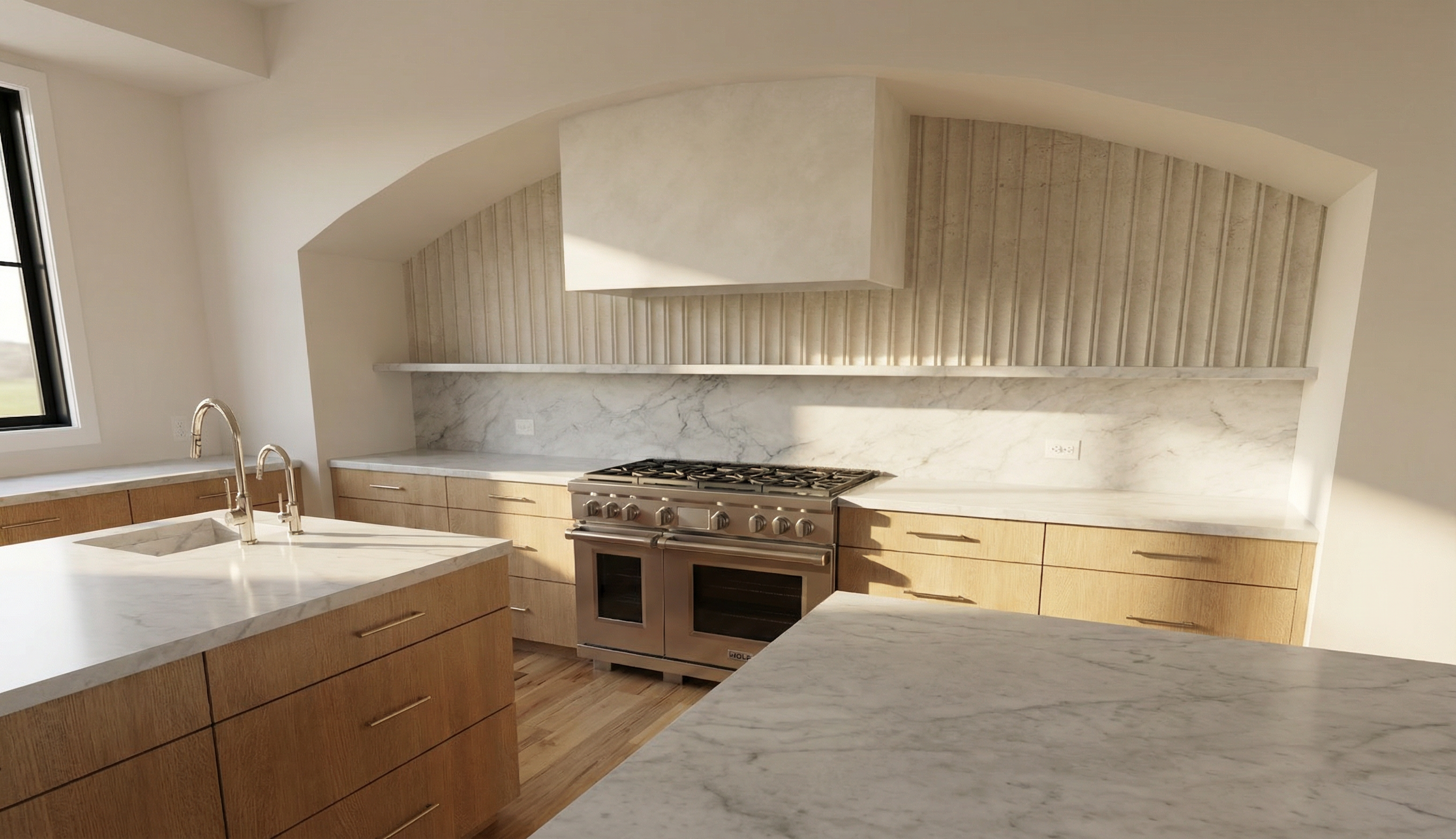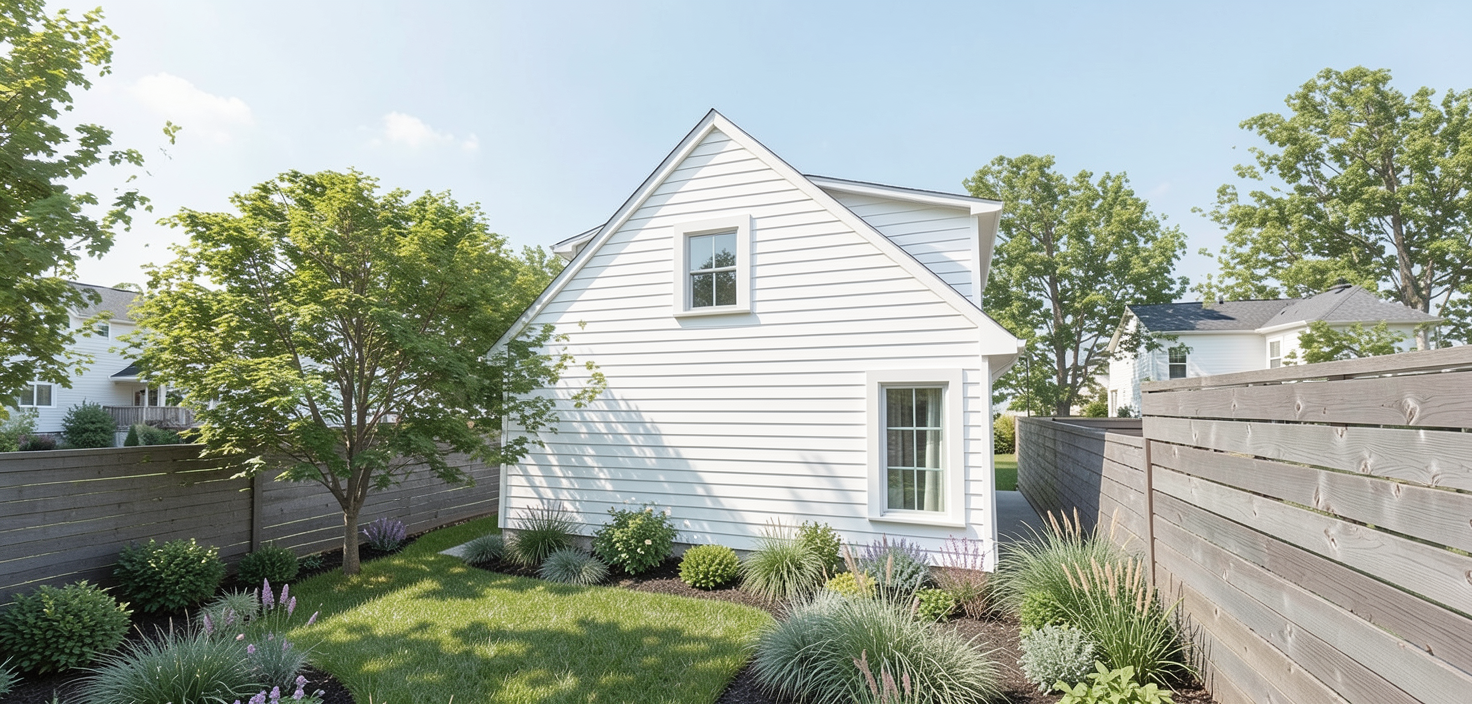 make a front elevation photorealistic as possible while keeping textures the same as shown lightly landscaped in a lightly wooded suburb of croton ohio nice lighting remove any text use the following finishes 65625d board and batten siding 65625d trim black windows poured concrete foundation white board and batten shutters pewter certainteed dimensional shingles 43413f metal roof where shown white 3 lite craftsman 2 panel front door ad6638 posts