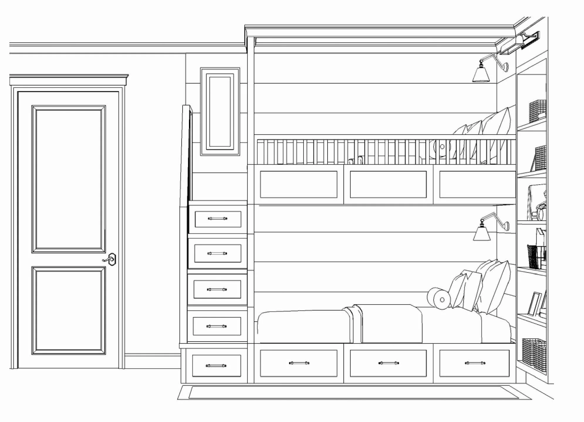 butter yellow bunks with tongue and groove walls