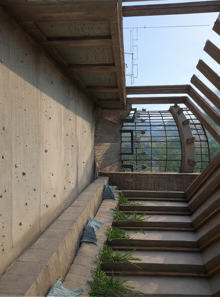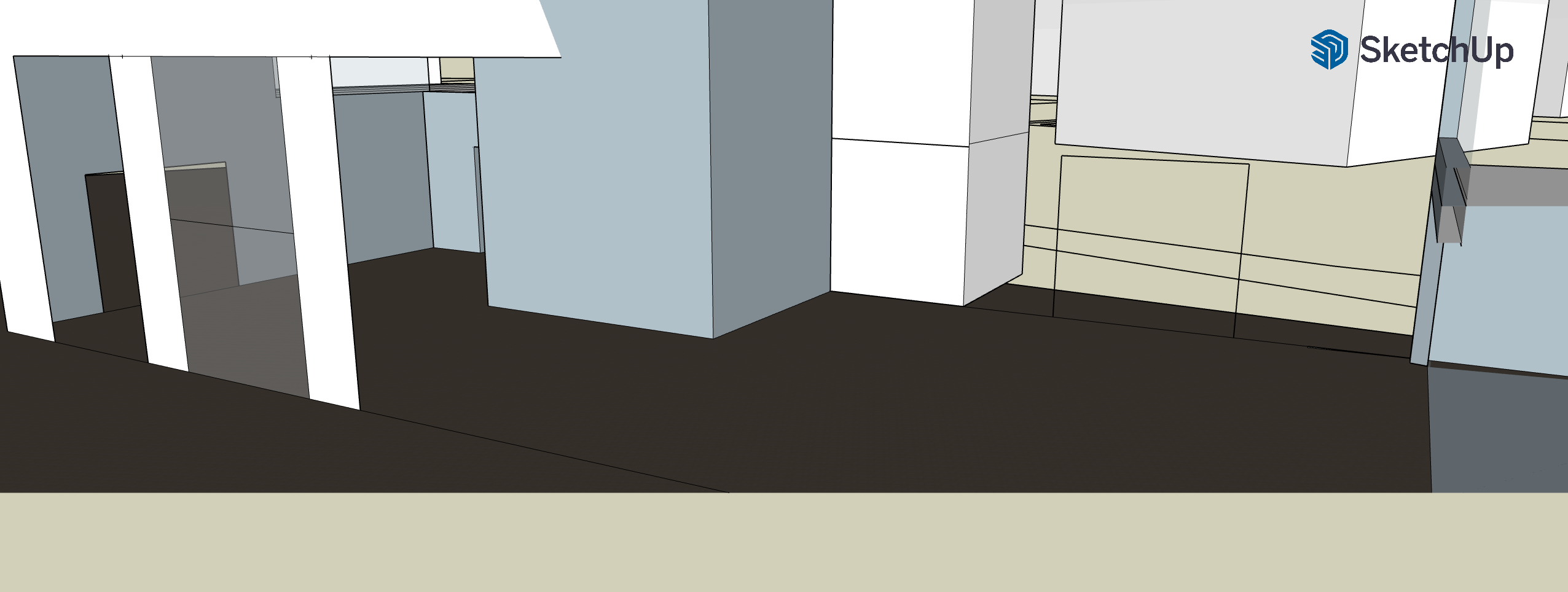 modern interior shot architectural interior with modern minimalistic design featuring large geometric structures use soft pastel blue for the walls and columns bright white for the ceiling and charcoal grey for the floor incorporate beige accents around the base of the walls ensure natural lighting streams in from an unseen source casting soft shadows and creating an airy open atmosphere the scene should convey a sense of tranquility and spaciousness architecture