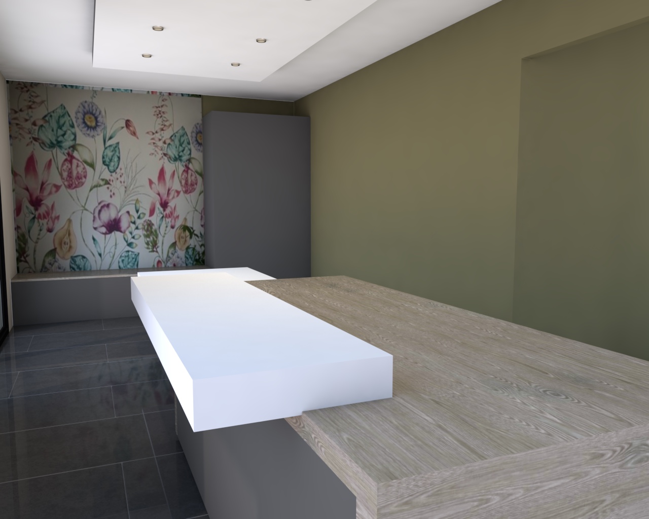 change la couleur du mur vert en une couleur qui pourrai bien aller avec le papier peint fleuri