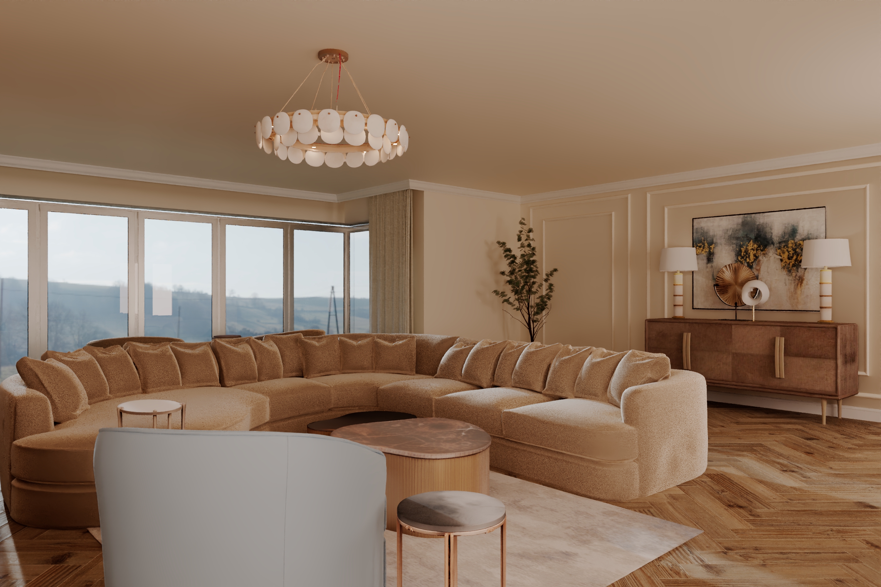 improve the lighting make the sofa lighter beige velvet seamless the armchair is mid blue fabric add decor on coffee table