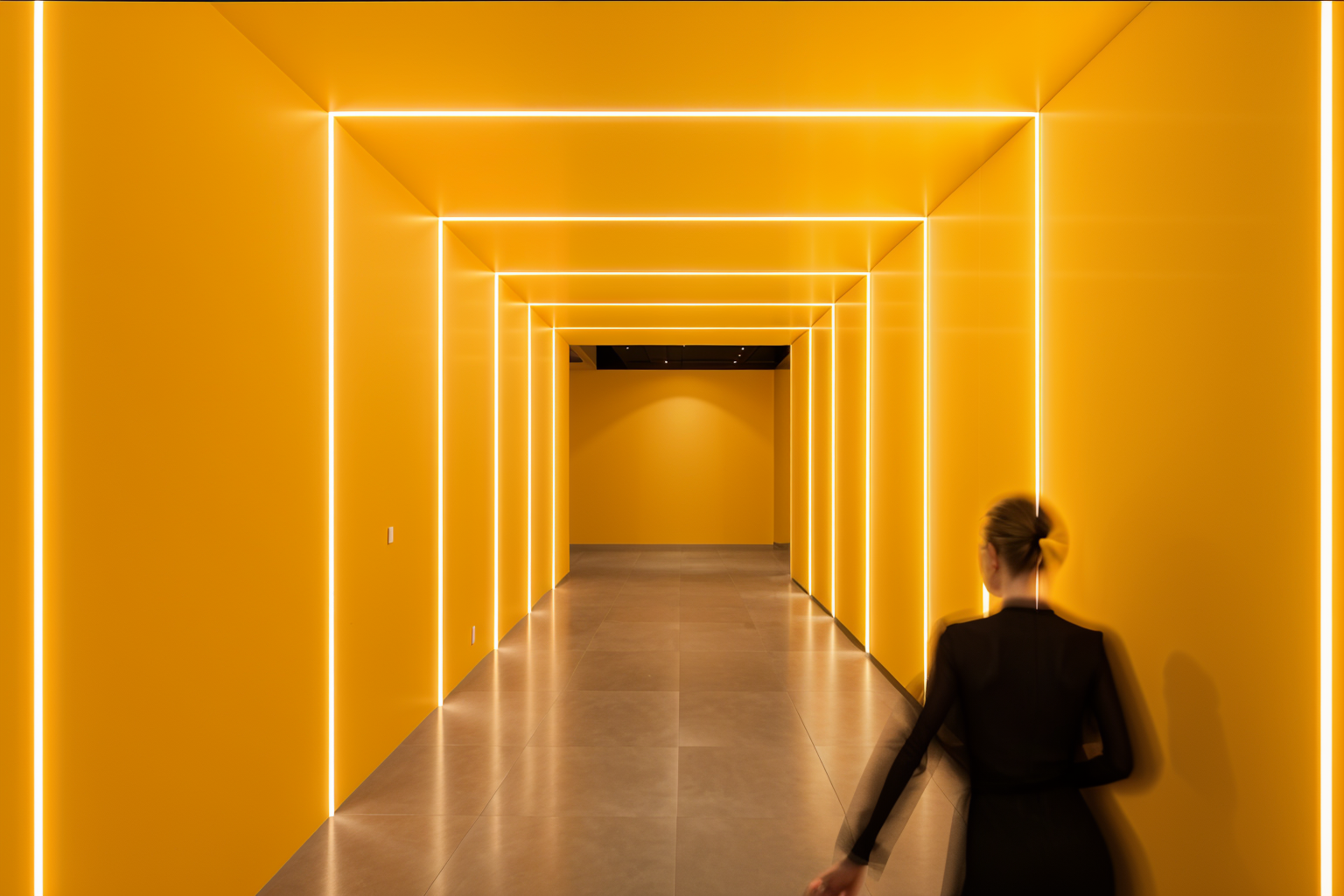 fix shading on the end wall wall should be yellow and smooth the wall at the end has two open walkways it should look like a t shape business man walking down the tunnel in the foreground