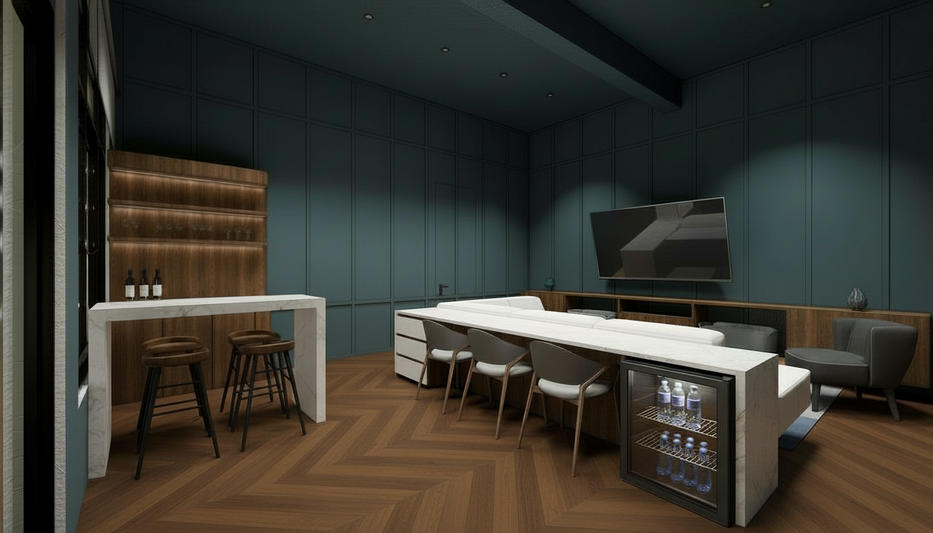 photorealistic architectural render based strictly on the provided image expand parking area replacing part of the park eliminate houses at the background