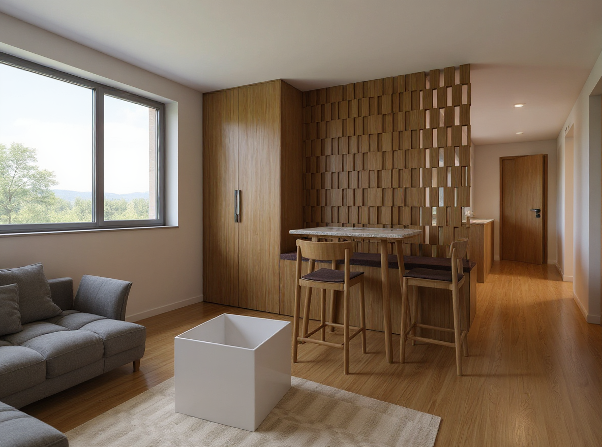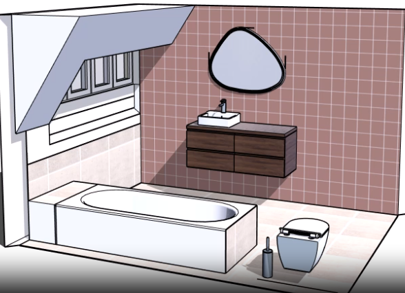 interior shot make a fotorealistic render of the image with glossy tiles on the wall architecture