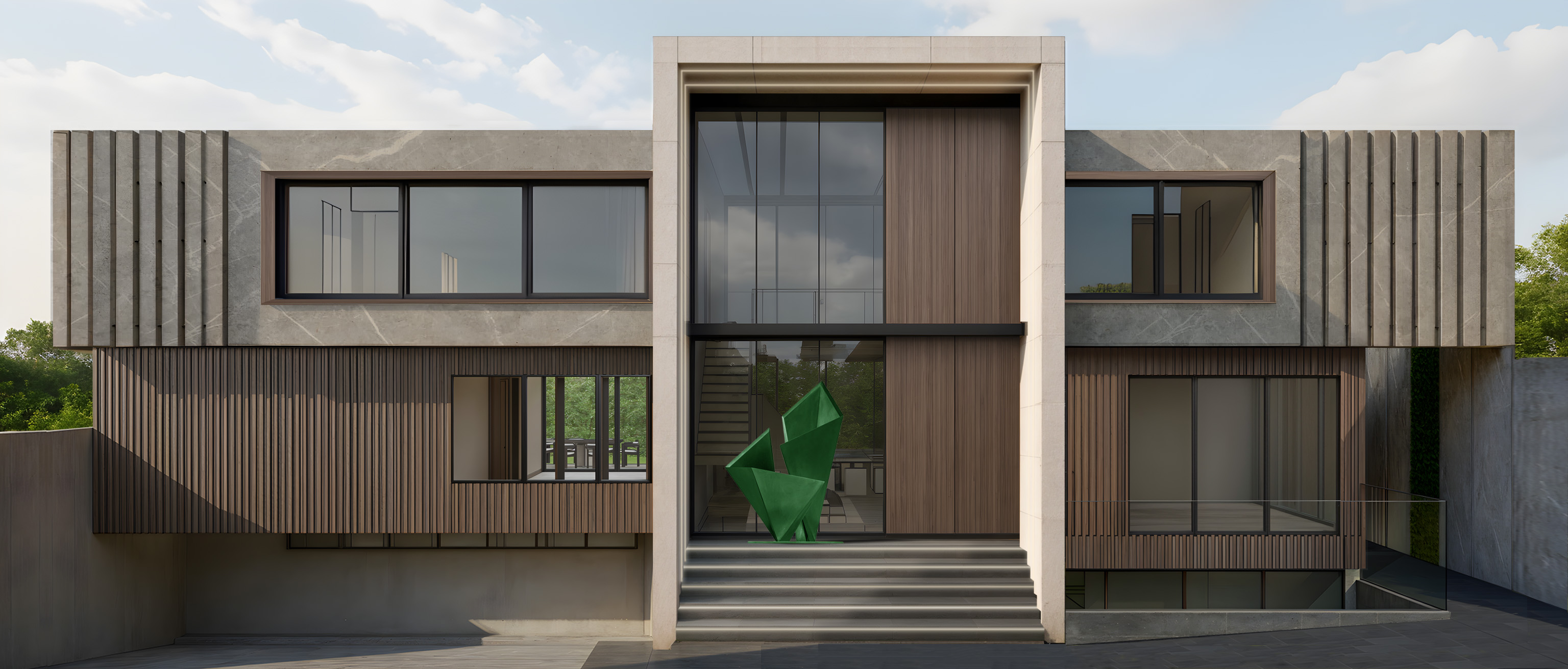 a manicured lawn layered flower beds low maintenance shrubs native plants stone pathway leading to the entrance