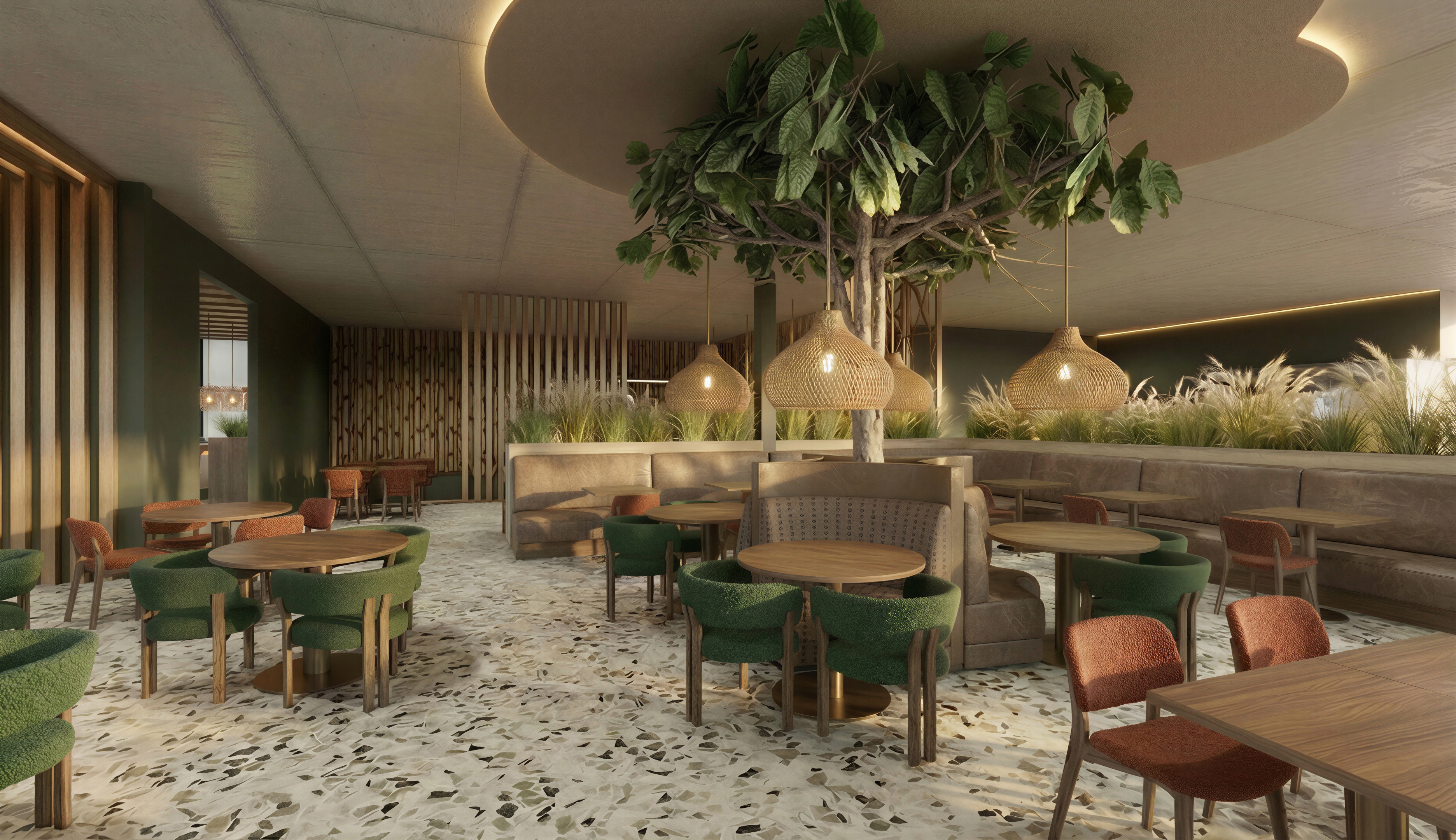 hyper realistic architectural photography high end interior design soft natural sunlight streaming through windows long soft shadows subtle ambient artificial lighting dimmable warm led accents realistic textures 8k resolution highly detailed shot on phase one xf global illumination raytraced reflections clean minimalist aesthetic lock all previous settings subject change the green grasses in the planters to grasses without white plumes and add another plant species