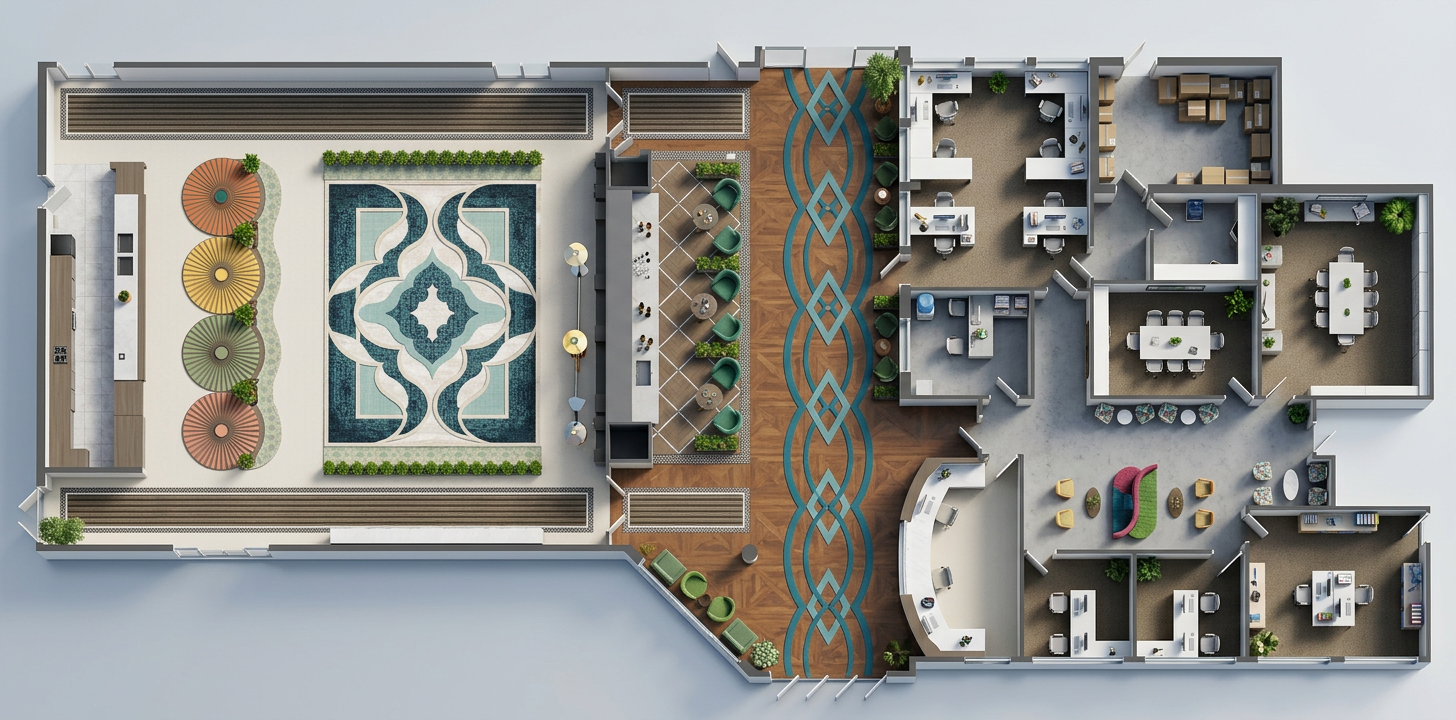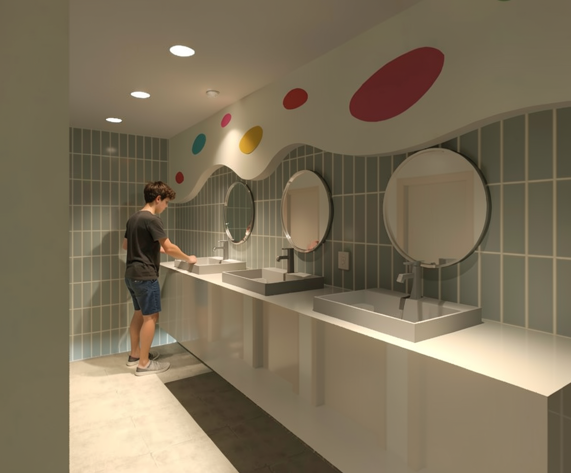 replace the workout bench press with a large squat rack with disk weights mounted symmetrically on both sides of the squat rack on the back wall