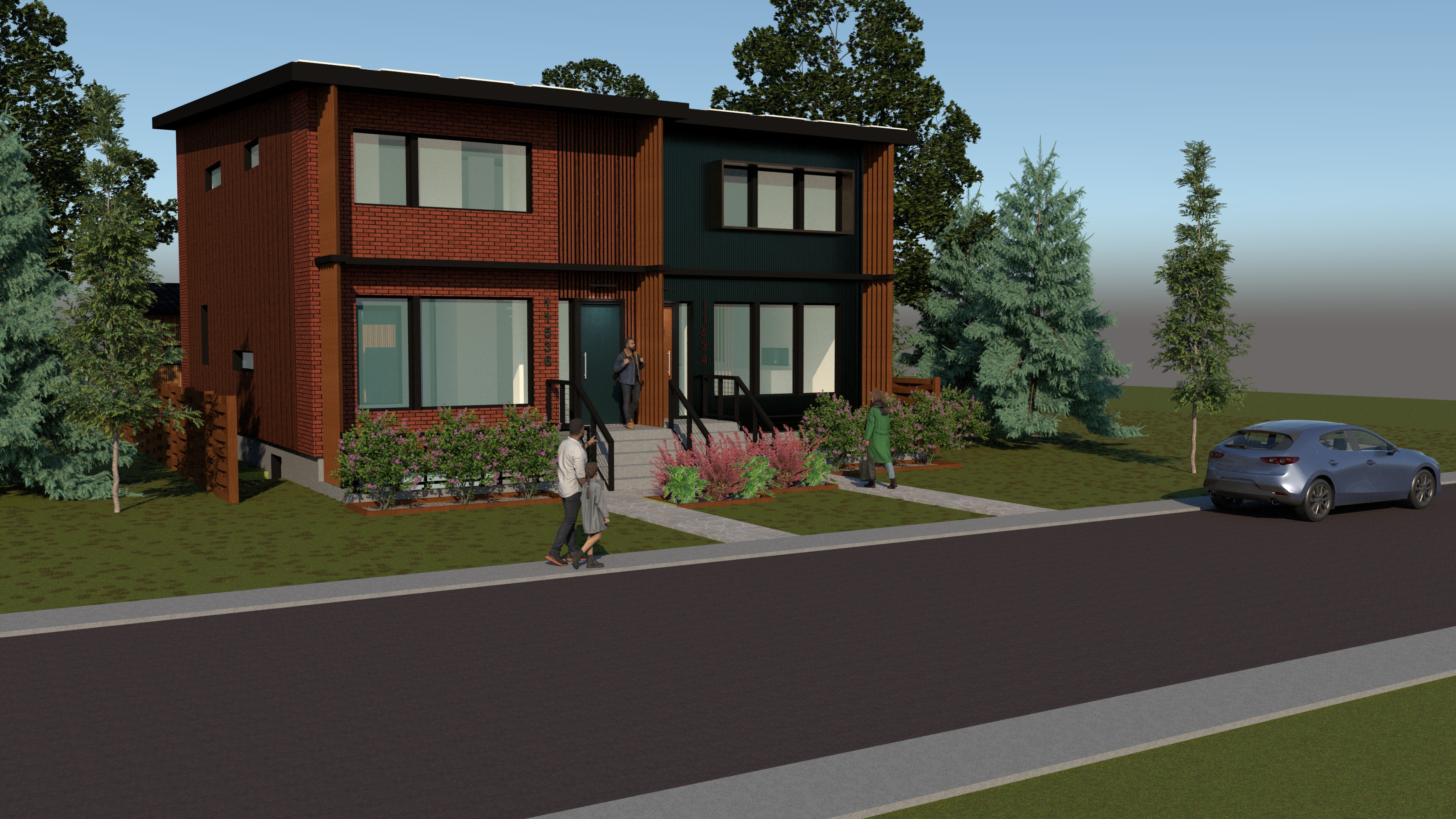 high quality render with ray tracing and reflections maintain style and color of siding add clouds and birds to the background