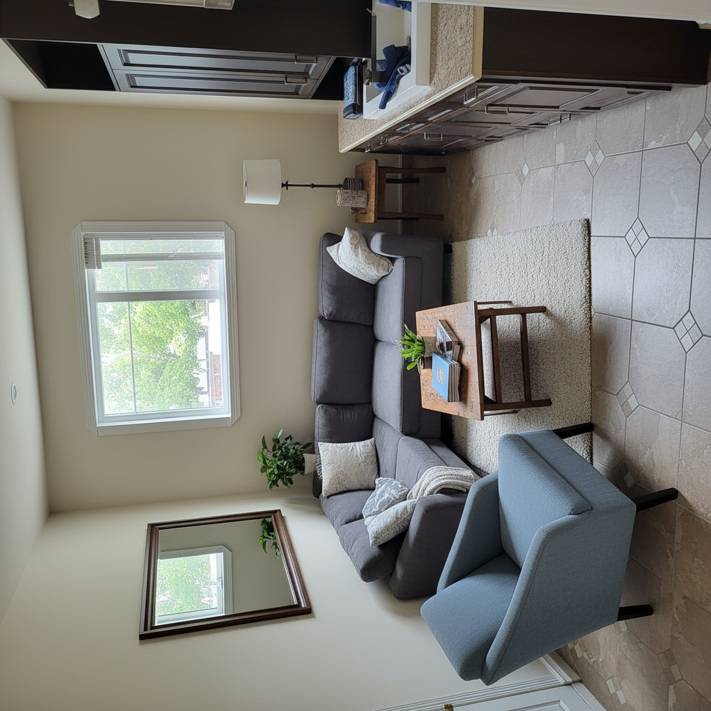 interior of cruiseship cabin cupboards on right have mirror finish
