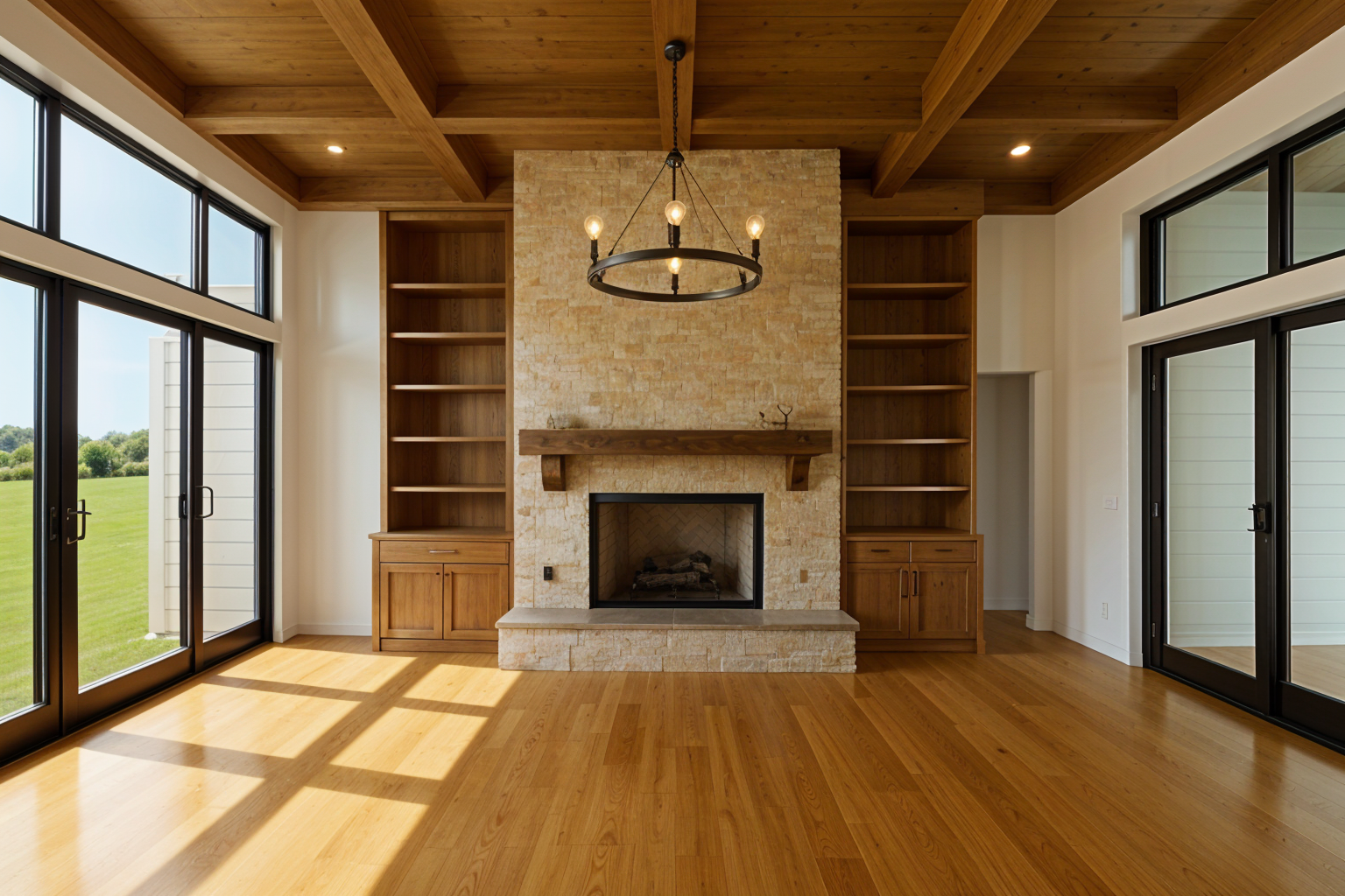 modern exterior shot add a tall frame with a fireplace inset wood shelves on each side of the fireplace frame architecture