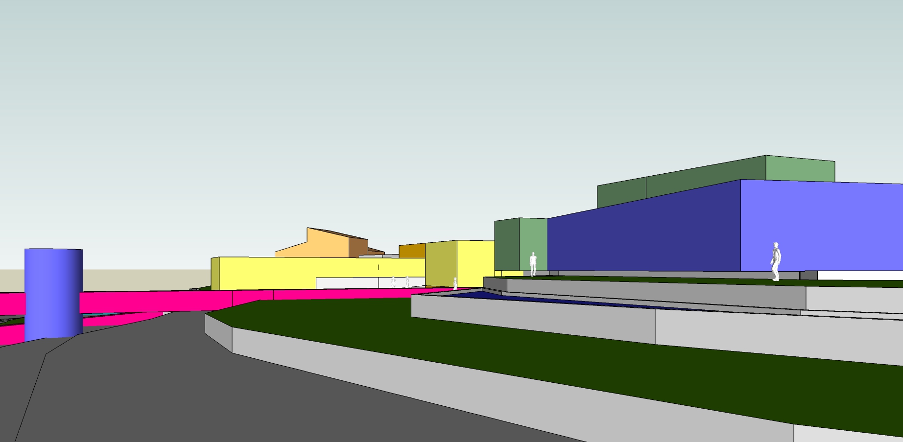 vertical brown wood shiplap siding large grid windows matte standing seam metal roof infinity pool farm buildings set into hillside with tall grass