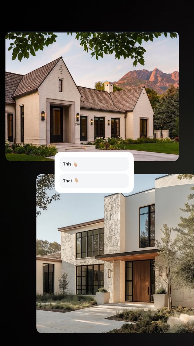 exterior shot do not change the structure of the house at all just use the mood board to render the existing house in the moodboard style and materials