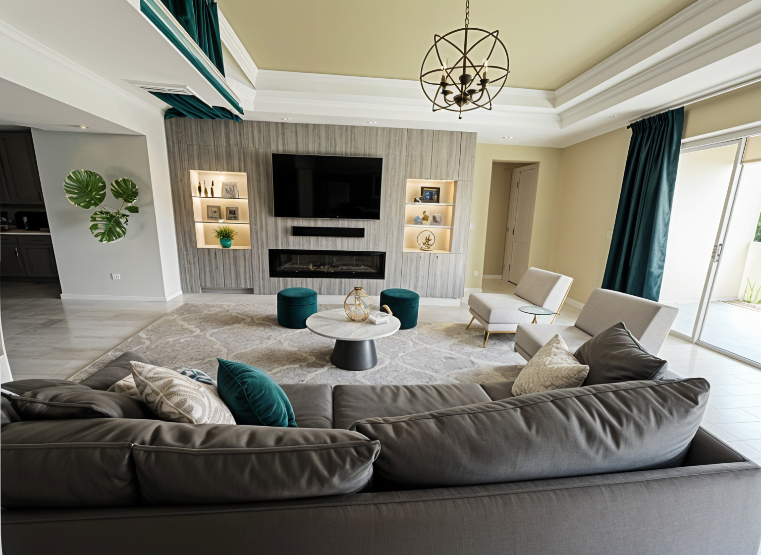 change the barstool fabric color the same taupe color as the sofa