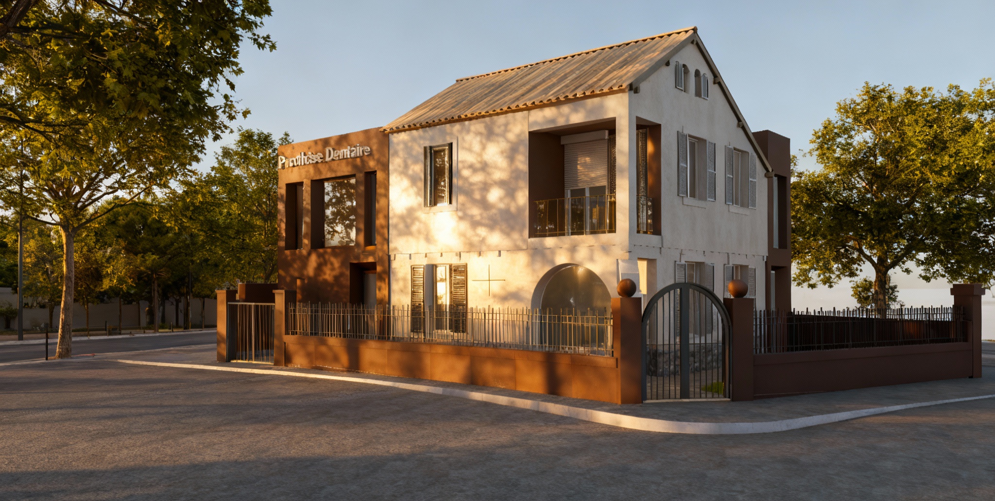 lot of reflects and sun light the sun illuminates the facade that one sees some trees and a street of marseille in the backgroung facade more in the light more reflect pills are painted no stone less shadow