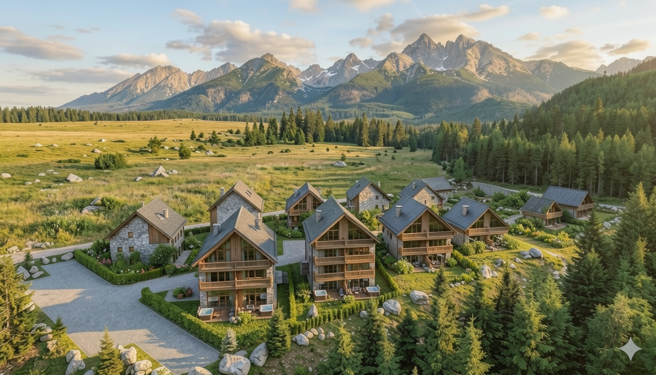 buildings facade in white color with wooden planks details front part covered with hatching