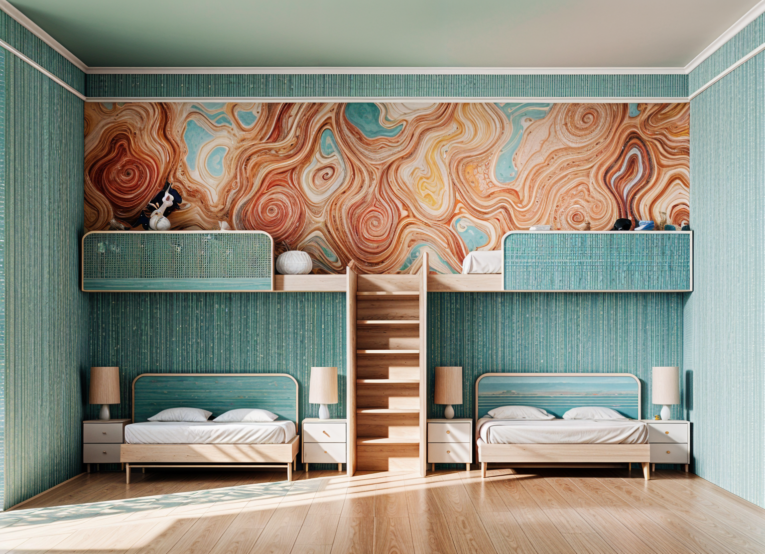 make a rendering of this stair space from the top floor looking to the light fixture copy the wall finishes