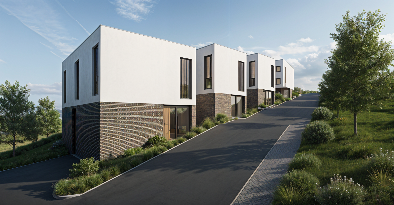 create rendering with walnut lower cabinets and all upper cabinets to be forest green painted and crown moulding to be forest green as well carrara gold marble for the countertops and the backsplash add undercounter lighting and lighting at the two shelves above the sink add lighing at the island all cabinet hardware as shown in brushed gold add sunlight to the room