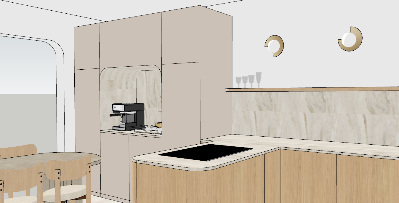 reproduire cette 3d l identique sans aucune interpr tation ni modification conserver strictement les formes dimensions proportions perspectives mat riaux textures et couleurs existants aucun l ment ne doit tre ajout supprim ou alt r objectif unique un rendu photor aliste fid le 100 sans d formation ni r interpr tation table a manger blanche sol carreaux 120 x 120 cm beige effet beton plus clair moins marqu cr dence moins marqu e moins flou l ouoverture montre salle a manger eclairci un peu la piece ne modifie pas les appliques allume les floute l ouverture a gauche