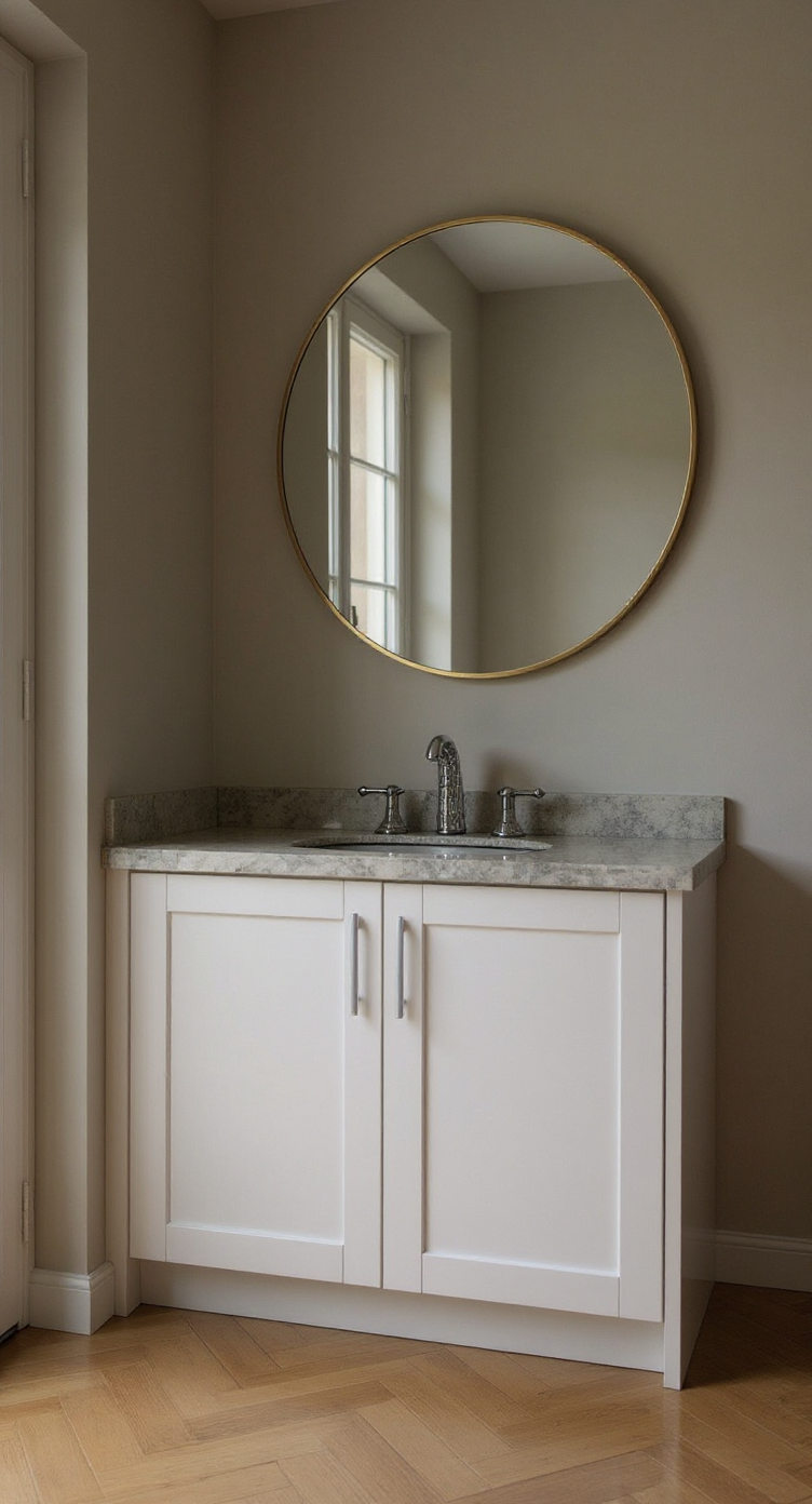preserve the exact cabinet layout dimensions face frames door styles drawer fronts hardware countertop shape sinks and faucet positions do not change any cabinet geometry spacing proportions or materials do not recolor anything only enhance realism smoother edges subtle shadows soft natural lighting clean textures and a more polished photo like look preserve the exact cabinet geometry fillers stiles rails door and drawer proportions toe kicks countertop thickness wall depths and all spacing exactly as shown do not modify any dimensions alignment flush joints or positions do not redesign or reinterpret the cabinetry preserve the exact cabinet geometry fillers stiles rails openings door and drawer proportions toe kicks countertop thickness wall shapes and all spacing exactly as shown do not change any dimensions alignment reveals or positions do not reinterpret or redesign the cabinetry or walls preserve the exact cabinet geometry including fillers stiles rails toe kicks door and drawer proportions and all vertical and horizontal alignments exactly as drawn do not modify filler height width or position do not extend fillers to the floor or alter their proportions in any way do not change any cabinet dimensions reveals or layout do not redesign or reinterpret the vanity only enhance realism by smoothing lines improving lighting and shadows and giving a subtle photo like appearance keep all colors materials and structure exactly the same