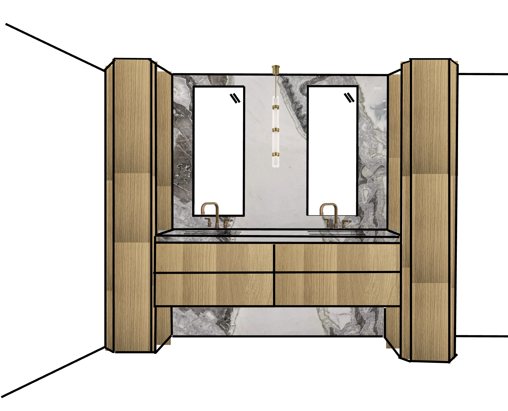 us the actual stone in the uploaded image as the backsplash angle the corners of the tall cabinets